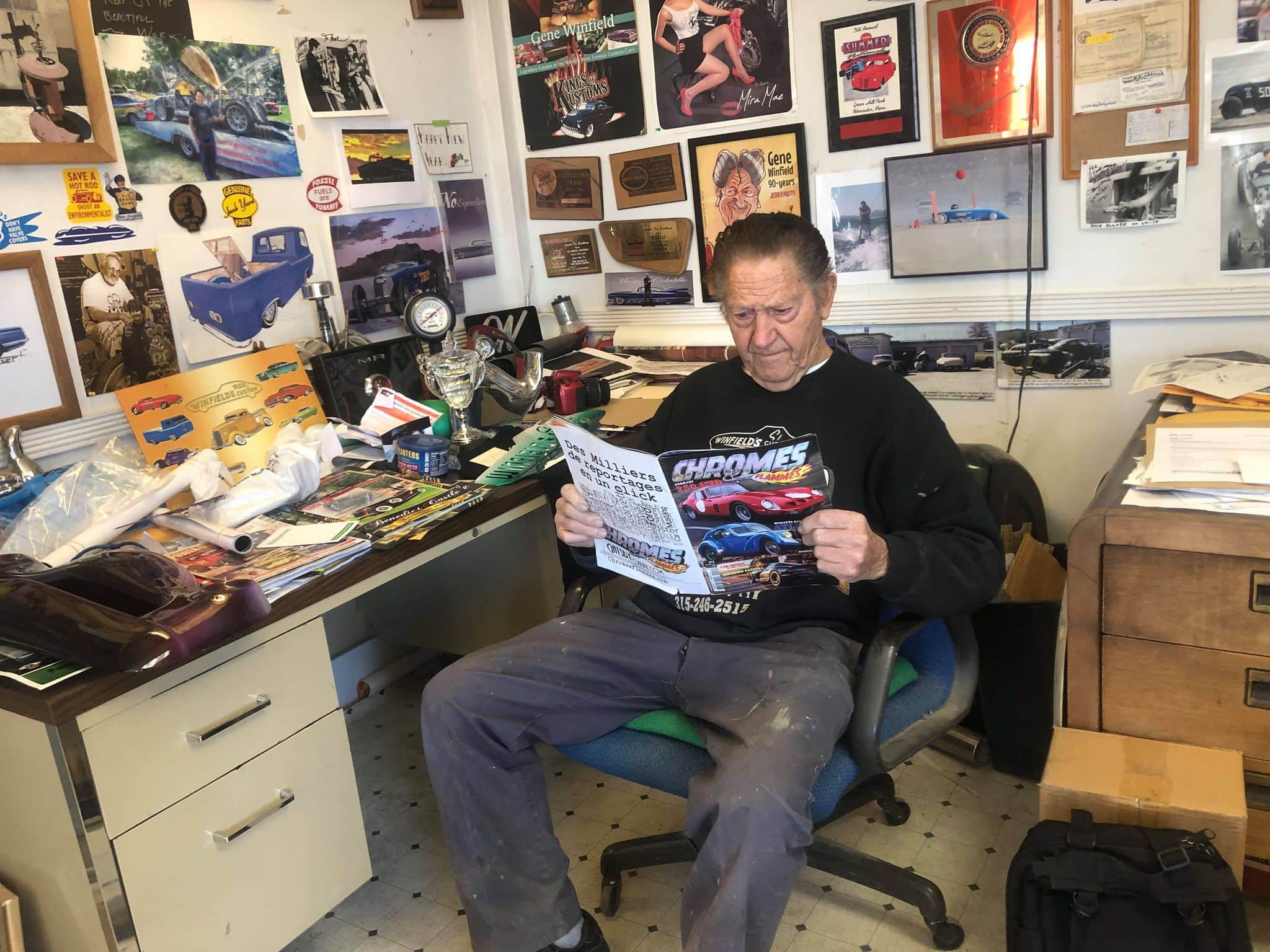 Eric Arnette a téléphoné à Gene Winfield dans son magasin et lui a posé des questions sur le ’32. :“Je pense qu’il était un peu sceptique. Il a mis la main sur tant de voitures célèbres au fil des ans, et je suis sûr qu’il reçoit beaucoup de ce genre d’appels”…. Le spectacle de la fête des pères du L.A. Roadsters n’était qu’à un mois de distance. Winfield a suggéré à Arnette de rassembler toutes les photos qu’il avait et de venir lui rendre visite au spectacle. Eric Arnette et sa femme, Kristie, se sont envolés pour la Californie et ont rencontré Winfield. Il a tout de suite reconnu le ’32, mais avant de le dire à Arnette, il a appelé un autre des fondateurs du “Century Toppers Car Club” de ces premières années, nommé Bart Bartoni….