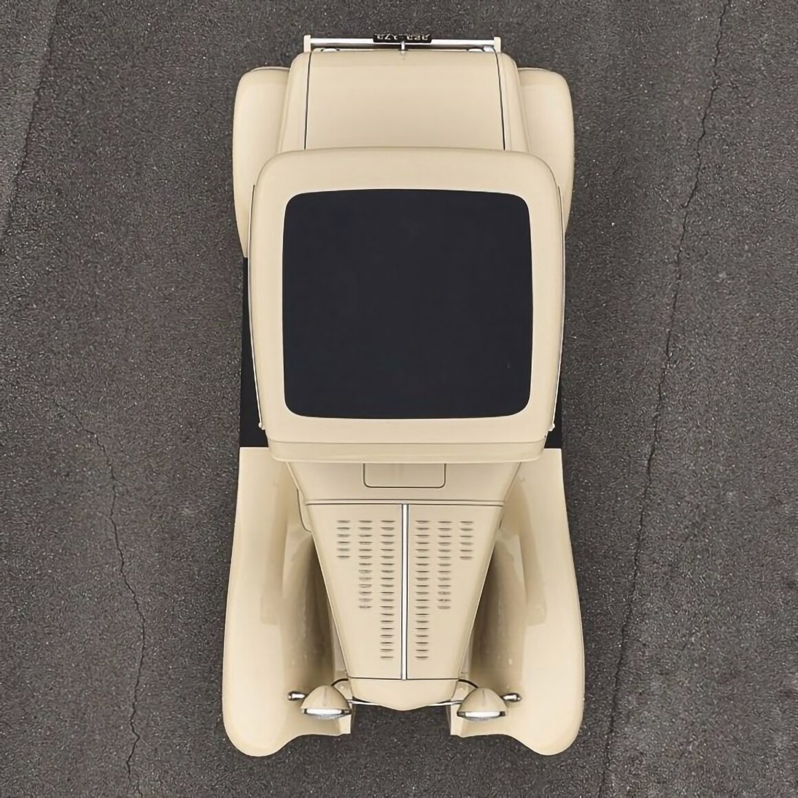 Je suis septique sur les 16 ans qui auraient été nécessaire à une entreprise qui est un garage spécialisé en Hot Rod’s… Outre que c’est une action grotesque d’une rentabilité nulle, mais elle est aussi stupide que ridicule… Je suis suspicieux et je n’en crois strictement rien, n’ayant pas de temps pour m’y apesantir… Ce coupé modèle A de 1930 équipé d’une calandre de modèle B de 1932 semble tout nouvellement fabriqué et ne reflète en rien d’être le solde d’une construction de 16 années… Quelle serait la motivation de ce qui apparait comme un “non-sens-étrange” qui capture un look de Hot Rod Coupé classique, quoique strictement rien n’est y est d’origine, d’où le fait que c’est devenu quasi intraçable…