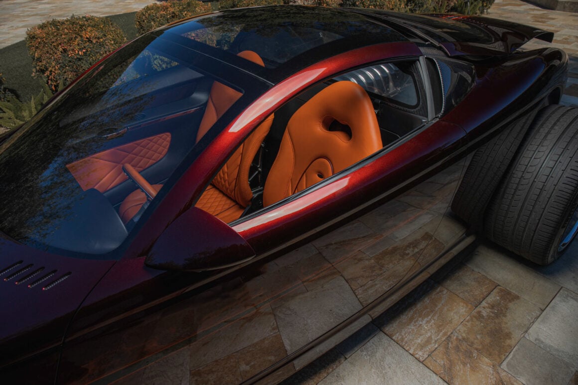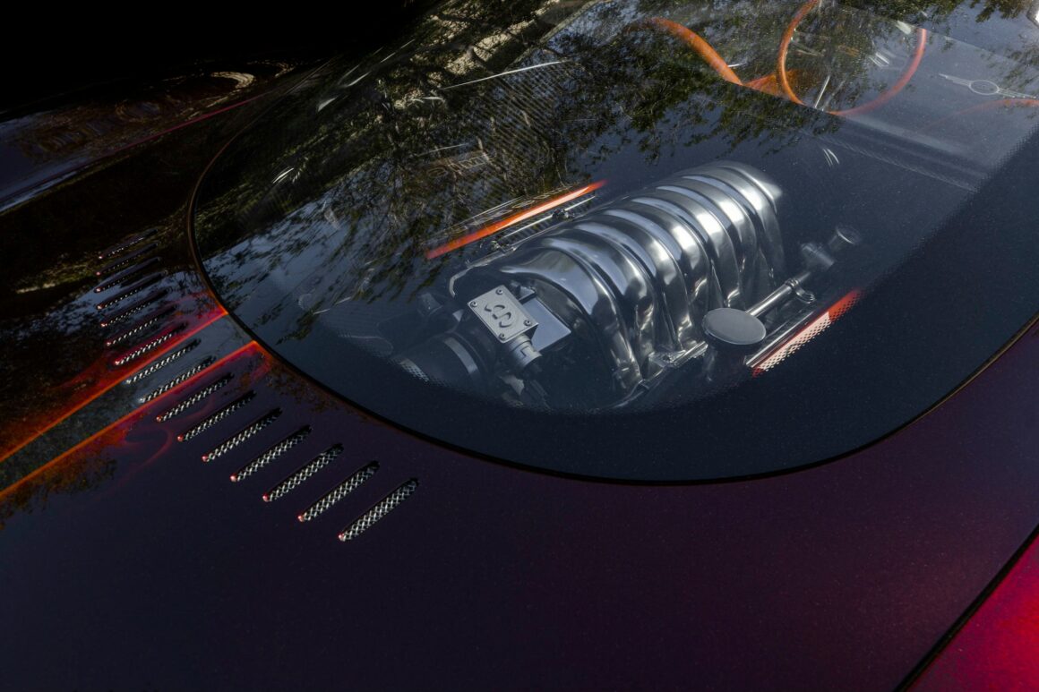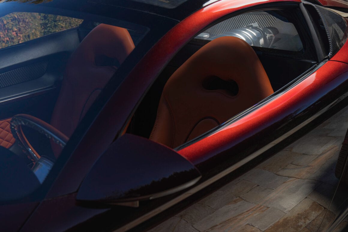 Chacune était accouplée à une boîte-pont ZF à cinq vitesses similaire à celle utilisée dans une DeTomaso Pantera. Le moteur se trouve juste derrière la tête des occupants et aucune des deux premières voitures n’a de panneau de séparation entre l’homme, sa compagne et le moteur, mais elles le feront, comme toutes les autres. L’intérieur est petit mais très confortable, et les matériaux sont de première qualité.