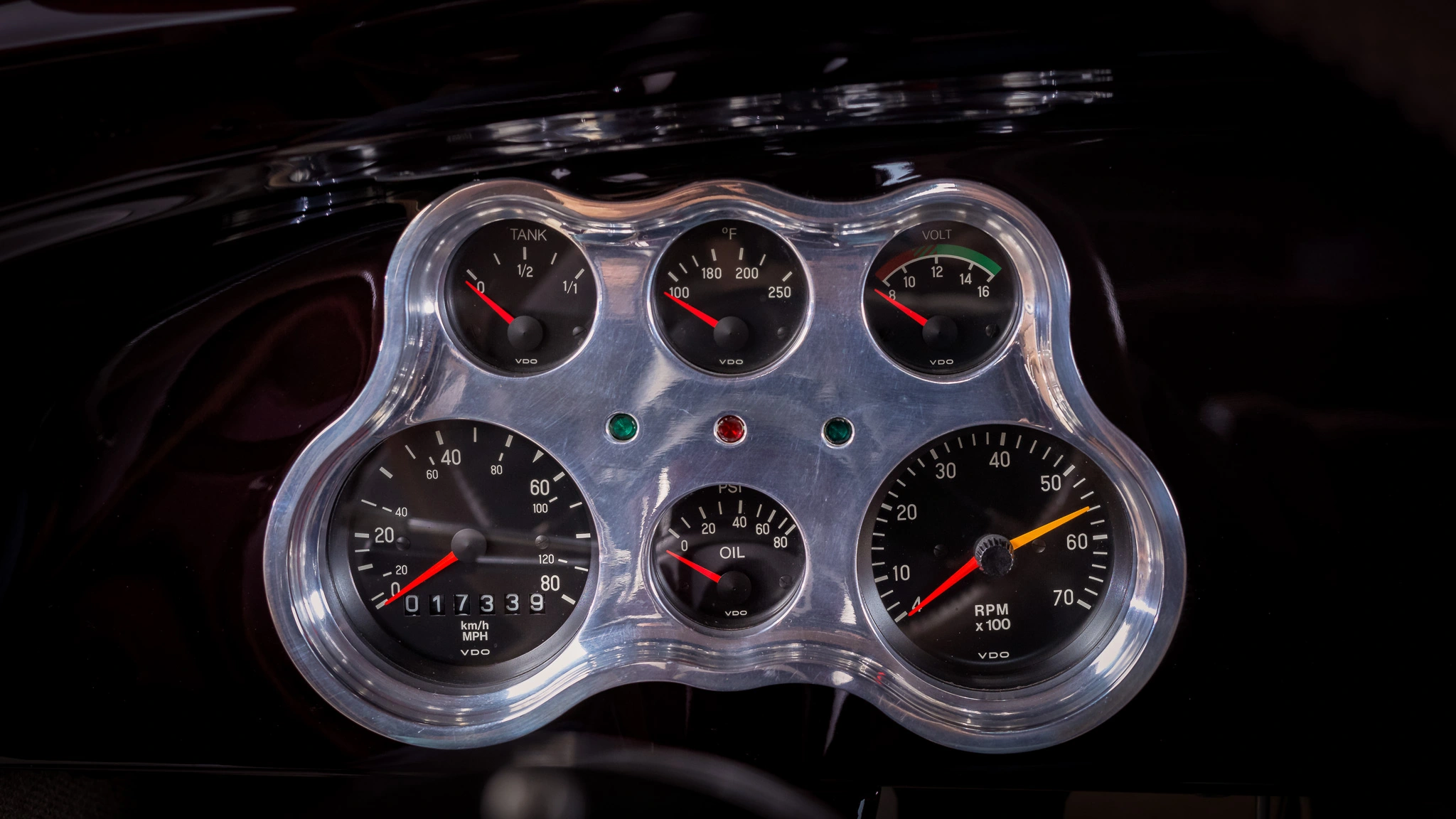 Les trains roulants viennent d’une Corvette C4, la batterie est une “pile à combustible Fuel Safe”, il y a la climatisation, le levier de vitesses est un Hurst, le volant un Lecarra et le système audio a été personnalisé avec des haut-parleurs Polk. La carrosserie en acier a été modifiée par Boyd en personne ! Les phares chromés disposent d’ampoules halogènes avec clignotants intégrés. Les feux arrière sont encastrés et le coffre et les portes à charnières arrière s’ouvrent avec des poppers électriques.