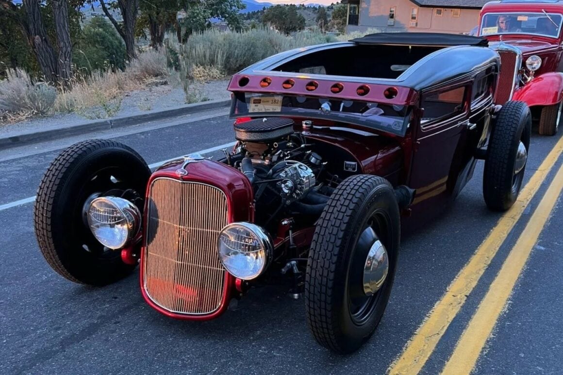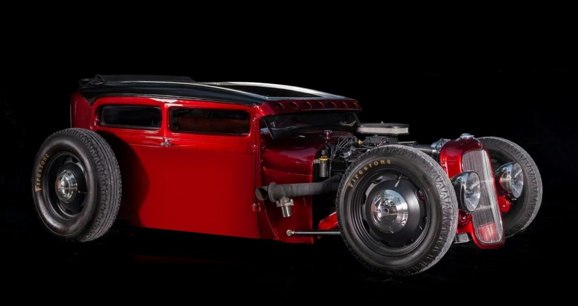 La puissance provient d’un Chevrolet V8 350ci à injection de carburant soutenu par une transmission automatique Turbo Hydramatic. Les autres points forts de la construction incluent un essieu avant surbaissé, des freins à disque, une extrémité arrière à 10 boulons, des jantes Divco de 18 pouces et un panneau de toit coulissant en tissu. L’intérieur est recouvert de cuir marron et comprend des sièges baquets “bombardier”, des vitres électriques, un tableau de bord Impala re-sectionné, des instruments Dakota Digital et un levier de vitesses Lokar. Surnommé “Diablo Rojo”, ce Hot Rod Ford a remporté de nombreux prix depuis sa construction et est maintenant proposé 60.000$ en Arizona avec un titre propre de Washington au nom du vendeur. La carrosserie de la berline Tudor en acier a été coupée de 8″ et canalisée de 3″ et est finie dans un rouge pomme bonbon de House of Kolor. Il comprend également un toit coulissant Legacy, une visière de pare-brise percée, un pare-brise inclinable et des feux arrière Chevrolet 39.