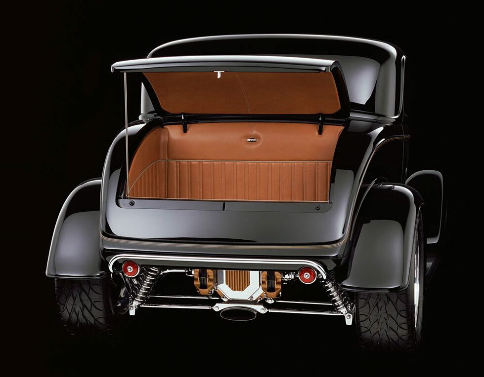 Le Hot Rod proposé ici montre Chip Foose à son meilleur. Combinant une position classique traditionnelle avec des touches contemporaines, chaque centimètre carré du “Li’l Foose Coupé” a été minutieusement raffiné et retravaillé, tout cela contribuant à réaliser un ensemble cohérent qui a fière allure en exposition et qui s’avère encore “plus méchant” dans les rues.