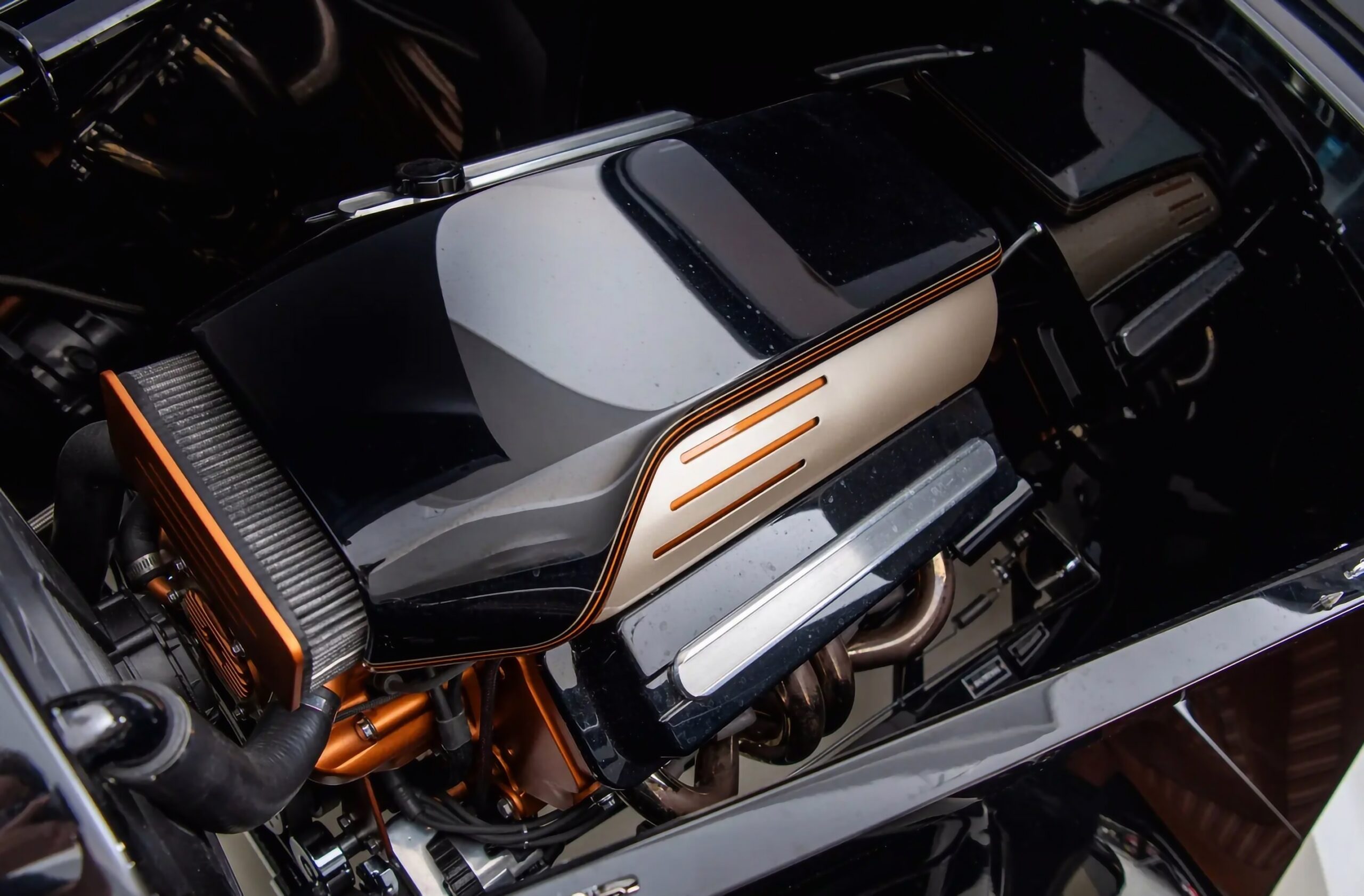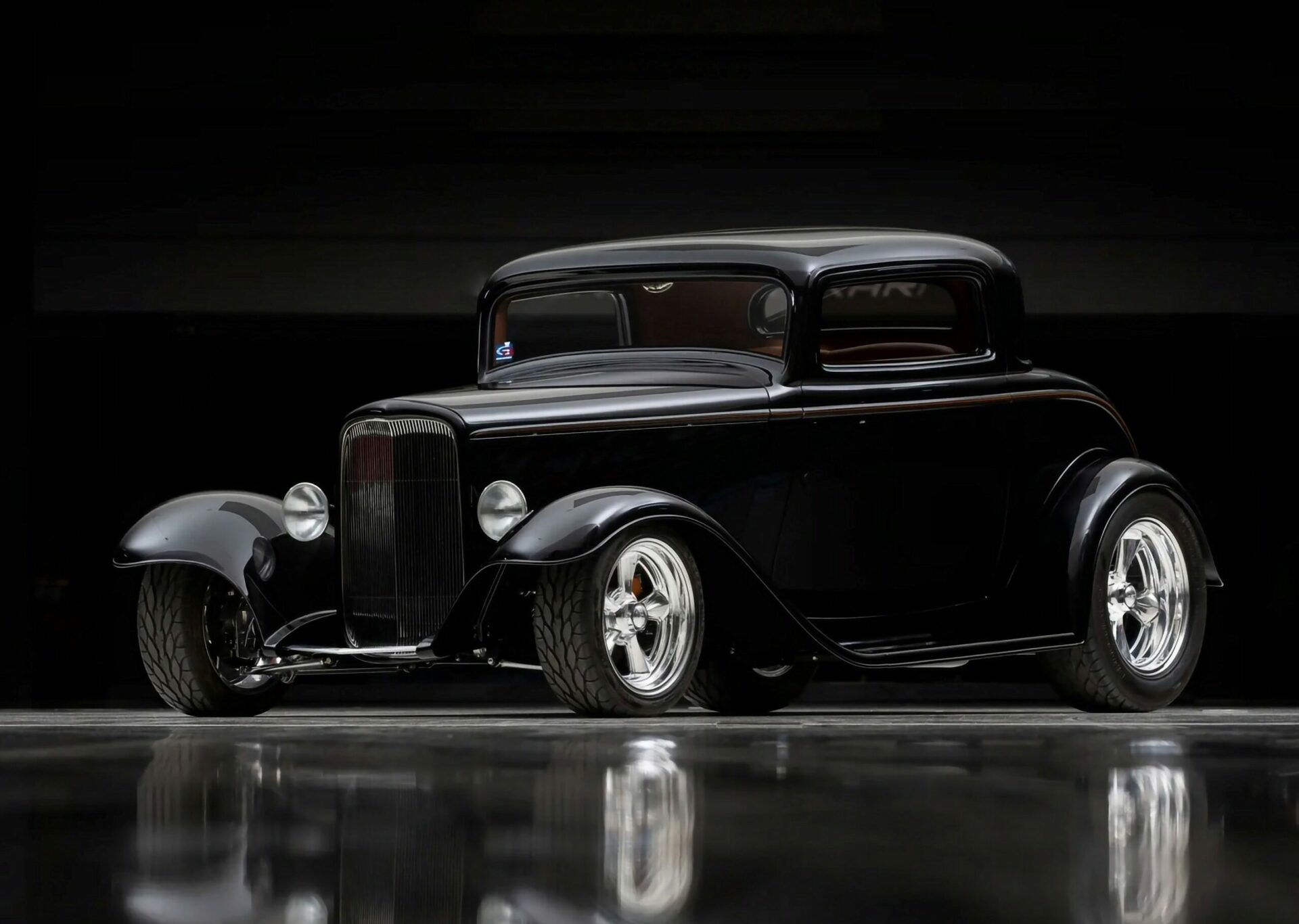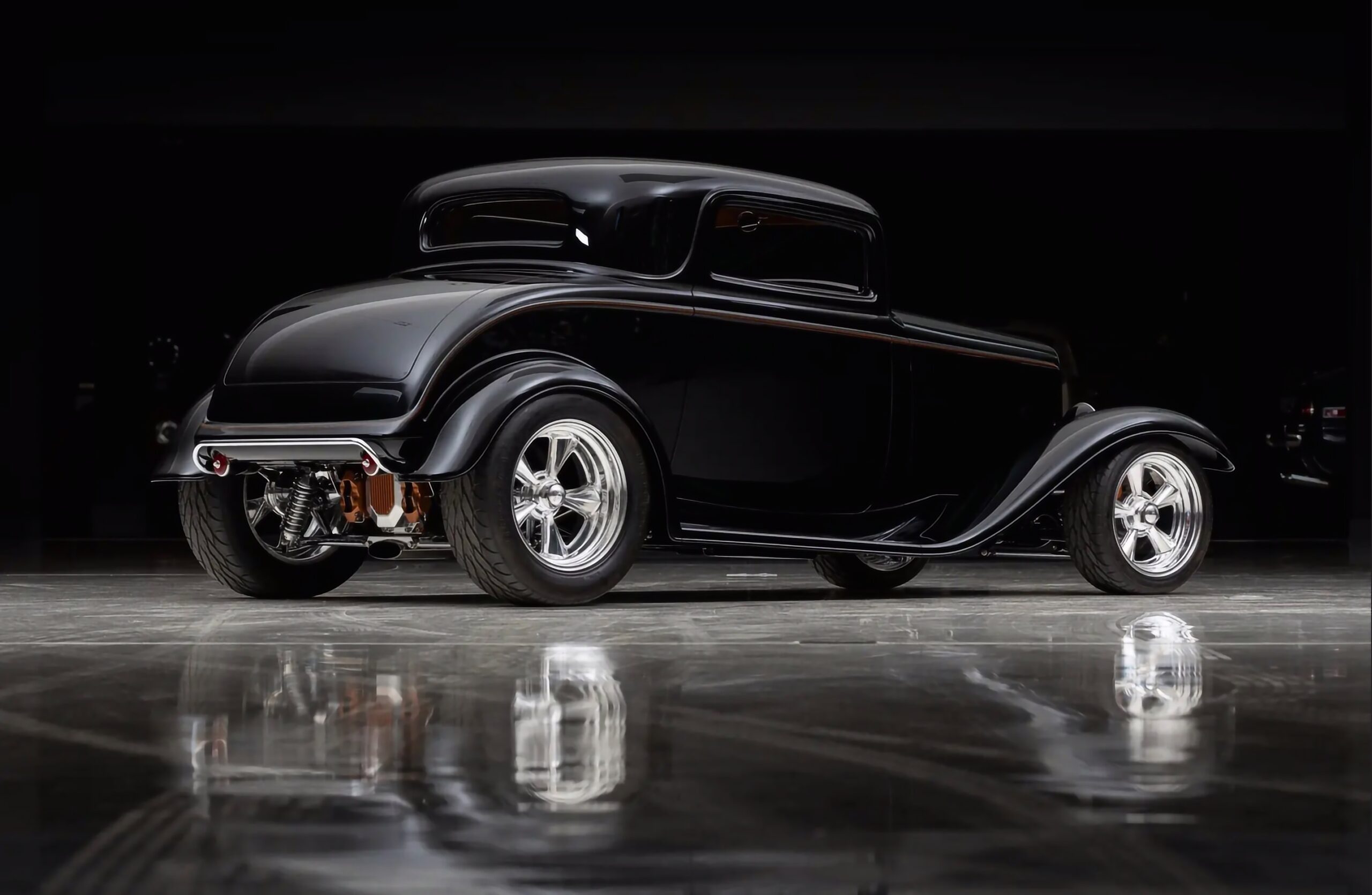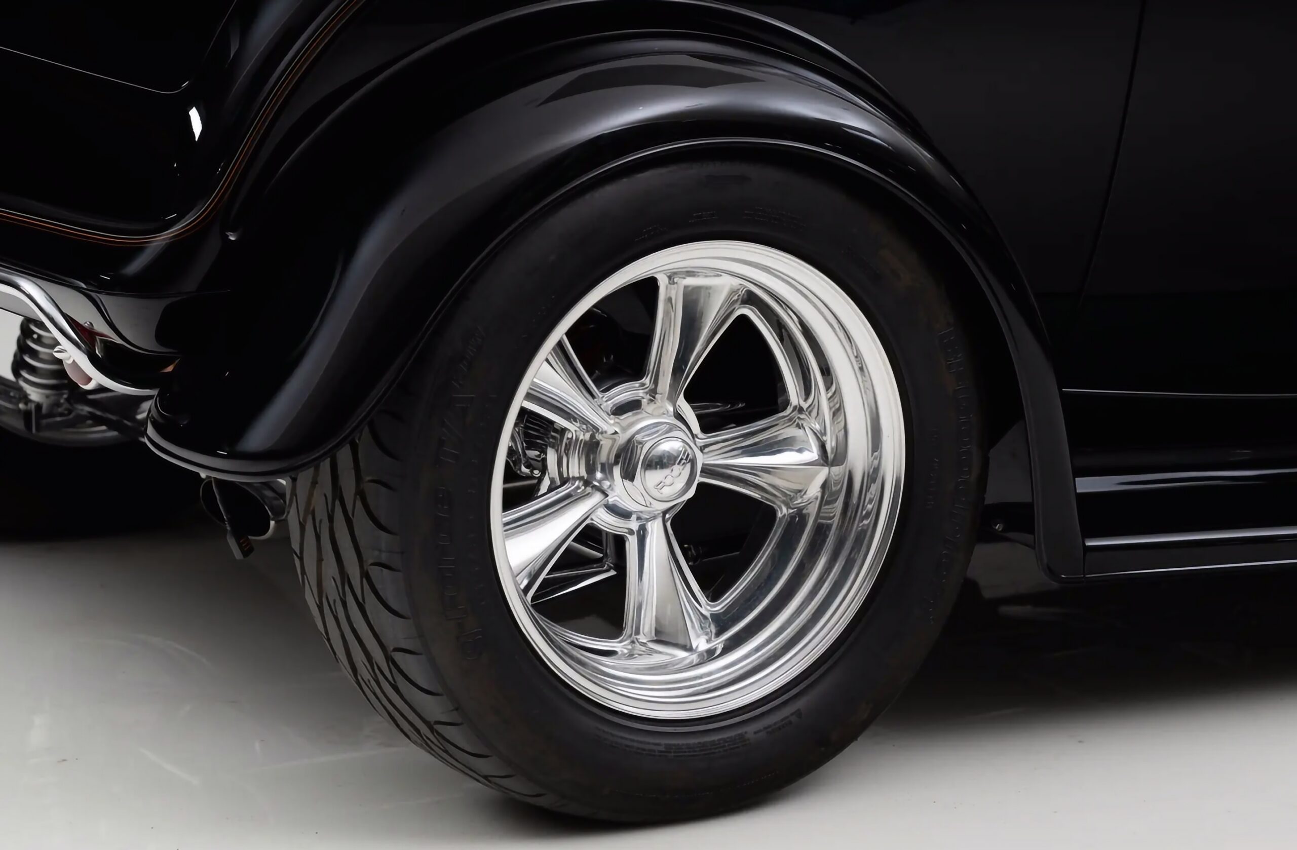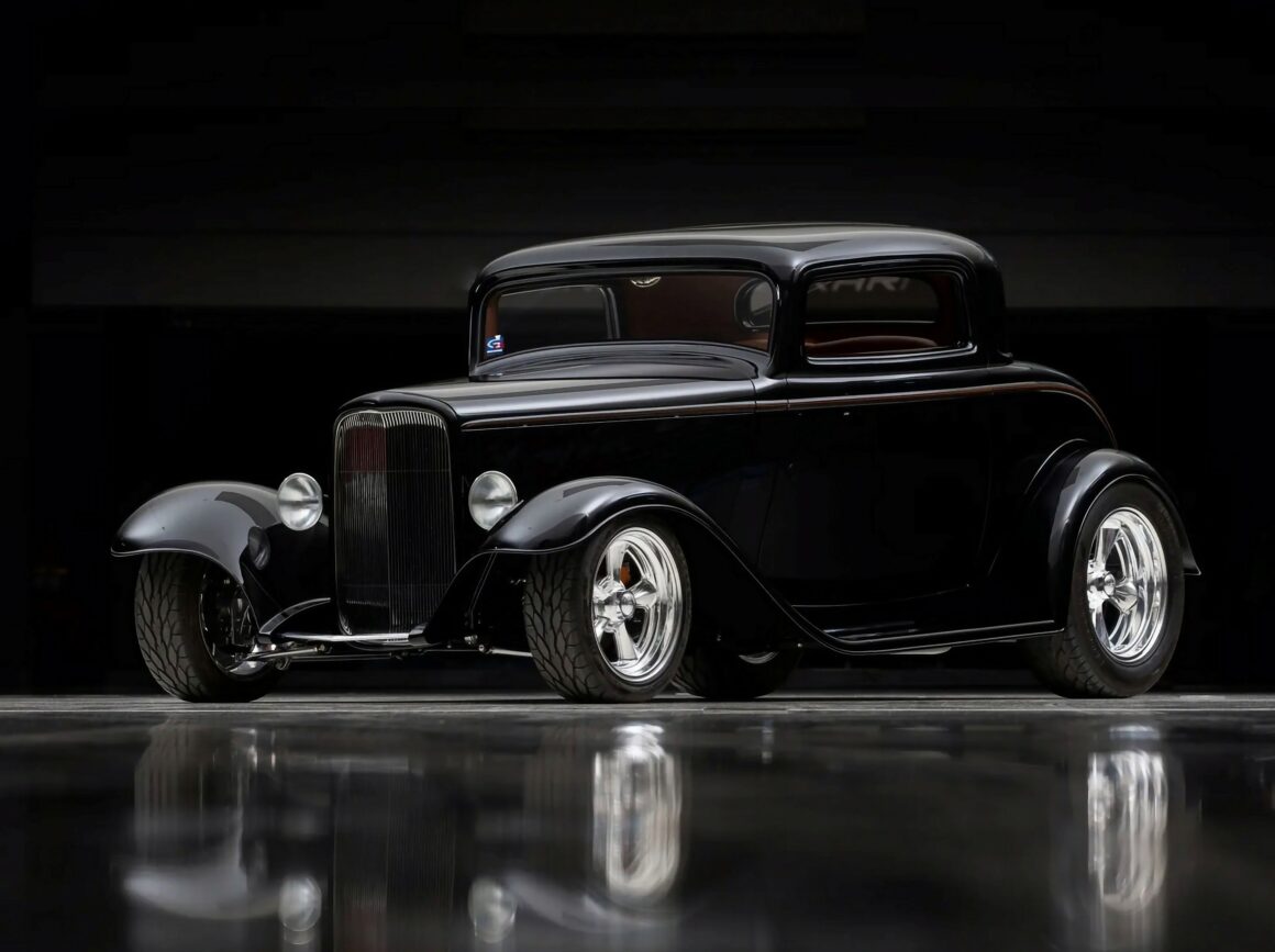 Ce Hot Rod est ainsi entré en trio avec un autre coupé Three Windows homologue et un Roadster’32, tous personnalisés à prix d’or par Chip Foose. Aucune partie du “Li’l Foose Coupé” n’a été épargnée au cours de la réalisation de la transformation “à budget illimité sans restriction” : Top Chop, capot étiré et lissé, ailes avant/arrière étirées et remodelées. Son Small bloc V8 LT4 Corvette 350ci est couplé à une boite automatique 700R4 Hydra-Matic à 4 vitesses.