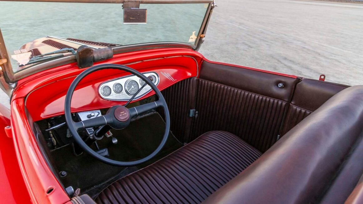 “C’est là qu’a commencé la légende de Gray Baskerville et de son Hot Rod Ford 1932. Nous avons estimé qu’il y avait parcouru 250.000 miles en 36 ans. Une grande partie de cela en mission pourRod&Custom, et plus tard pour HotRod magazine. Gray n’aimait pas traîner au bureau, s’il y avait des histoires, il était sur la route pour des reportages, prendre des photos, s’imprégner de l’ambiance générale de l’industrie du Hot Rodding et établir des relations importantes. De 1966 à 1981, le Hot Rod ’32 était la seule voiture de Gray Baskerville. À la fin de 1999, Gray a envisagé de faire restaurer son Hot Rod, mais a finalement décidé d’une sorte de rafraîchissement mécanique”. Comme il l’a expliqué à David Freiburger en 2002 : “C’était un beau et bon Hot Rod, mais il avait l’air bizarre. Je ne pouvais pas dépenser beaucoup d’argent dessus, mais j’avais besoin de rouler… La voiture est une pièce de musée roulante construite presque entièrement à partir de pièces de récupération volées dans des casses et des dépotoirs”…