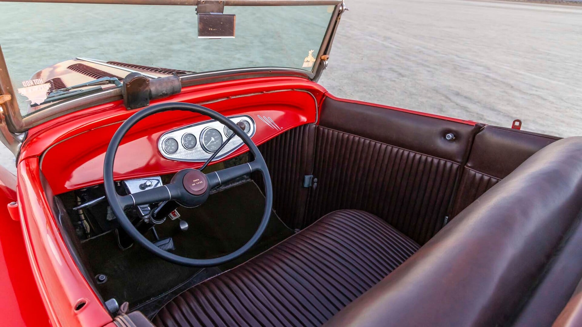L’affaire n’est pas terminée… Les “anciens” de Hot Rod Magazine, qui n’existe plus en version papier ni en version numérique (sauf quelques articles souvenirs) ont décidé de faire un “Remember” avec le Hot Rod rouge tacheté d’apprêt noir qui appartenait à Gray Baskerville, “LE” journaliste/écrivain du magazine HotRod… Pour célébrer le faux 75ième anniversaire du magazine Hot Rod qui n’a même pas atteint son 70ième anniversaire Papier, les “anciens de Hot Rod Mag” se sont associés à Castrol-GTX pour présenter quelques-unes des histoires qui illustrent le cœur de ce qu’était le mag’papier Hot Rod et en reflèter l’influence sur la culture automobile américaine.