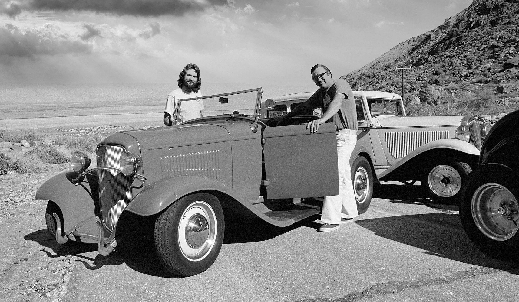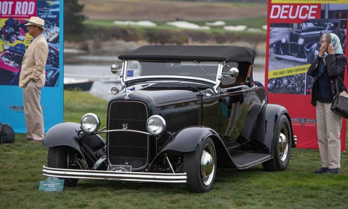 Gray est décédé peu après. Hasard de la vie ou manoeuvre promotionelle des gens de Hot Rod Magazine, quelques semaines plus tard les promoteurs du concours d’élégance de Pebble Beach ont invité le Roadster de Gray Baskerville à participer à la célébration du 90e anniversaire de la Deuce avec d’autres Hot Rods emblématiques… Oui, vous avez bien lu. C’était bien évidement calculé pour de la promo…Cette voiture. La voiture de Gray, bien qu’elle était belle comme une vieille peluche usée, regorgeait d’histoires, loin d’être à la hauteur de Pebble Beach, mais la fortune de Petersen y a fait pour beaucoup…. Cela a été utilisé comme reconnaissance envers quelques propriétaire ordinaires, des gars qui étaient un peu rudes sur ses bords mais qui ont créé l’Amérique…