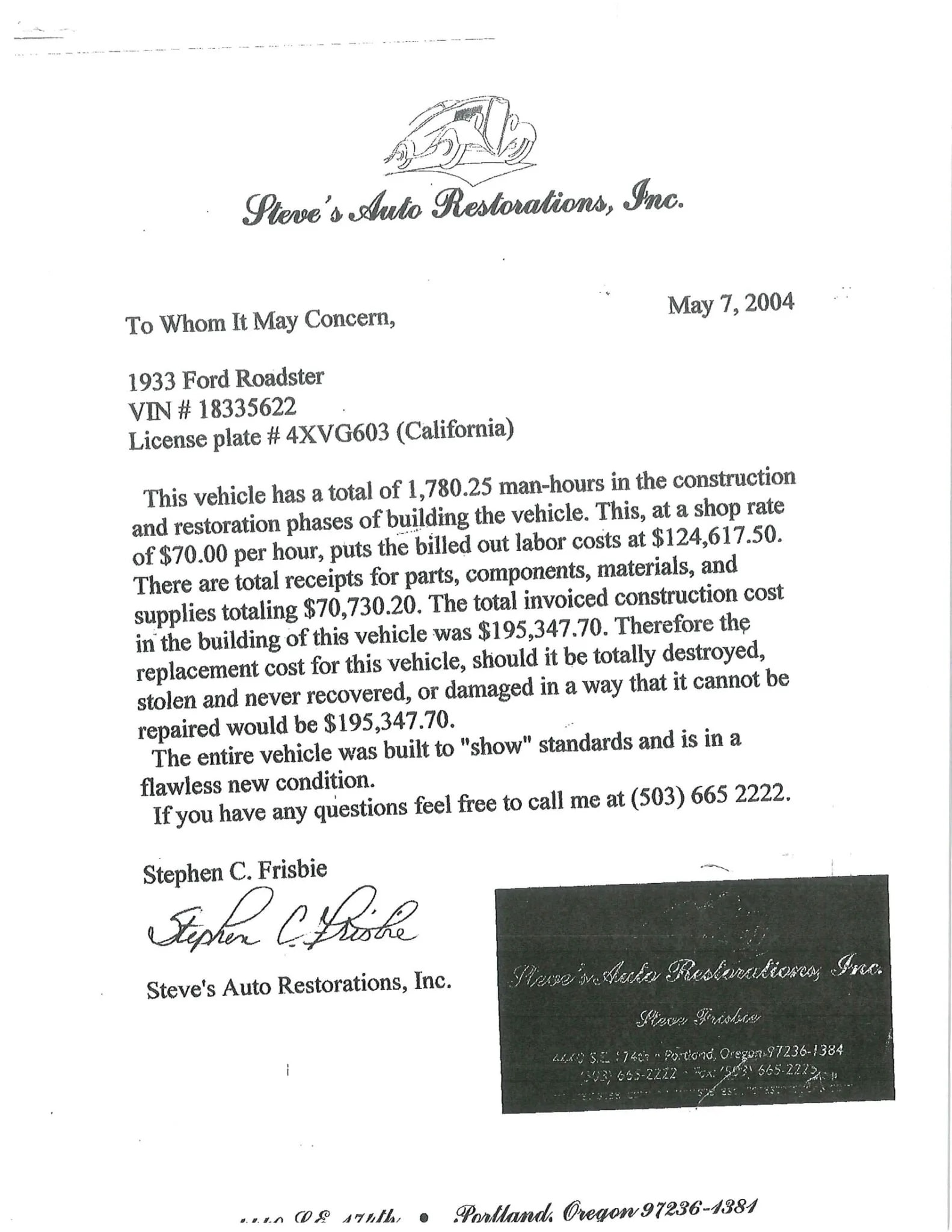 Aux USA, la valeur d’un tel Hot-Rod Roadster’33, estimé (estimable) à 250.000 US$ à négocier entre parties (le vendeur et l’acquéreur), peut être payé ca$h en billets “partouze” aux Etats-Unis… Aucun impôt aux USA, ni pour le vendeur ni pour l’acquéreur ! Ce sont des pratiques devenues rarissimes car interdites en France. Tout comme pour le Hot-Rod “Retrospect” vendu 200.000 US$, ces valeurs haussières aux USA (les Hot-Rods montent en valeurs sans taxes ni impôts) pour des véhicules créatifs personnalisés, sous-considérés en France, stupéfient les collectionneurs d’automobiles “classiques” Ferrari, Maserati, Bugatti, Delage, AlfaRoméo et autres stars-reines de l’esbrouffe et des magouilles “à yeux-ouverts”...