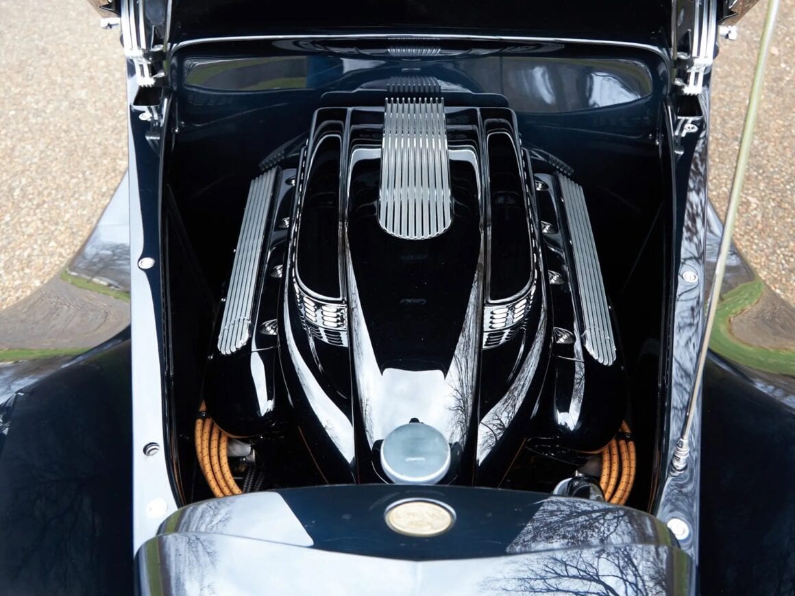 Niché sous le capot moteur personnalisé, se trouve un V8 Chevrolet LT1 jumelé à une transmission automatique; les doubles échappements étincelants du moteur s’étendent sur toute la longueur du train de roulement impeccablement détaillé. Des amortisseurs Coilover, avec suspension indépendante à l’avant font “le travail”. Derrière un ensemble unique de roues Budnik se trouvent des freins à disque avec des caches personnalisés, un détail emblématique du niveau de travail effectué dans les zones rarement vues de la voiture. “Retrospect” a connu une utilisation extrêmement limitée de la route et a passé une grande partie de sa vie post-Autorama hors de la vue du public. Véritable représentation de l’art de l’artisanat sur mesure, ce “Great 8” est aussi éblouissant aujourd’hui qu’il l’était lors de ses débuts, et attire toujours sans aucun doute les foules admiratives partout où il apparaît.