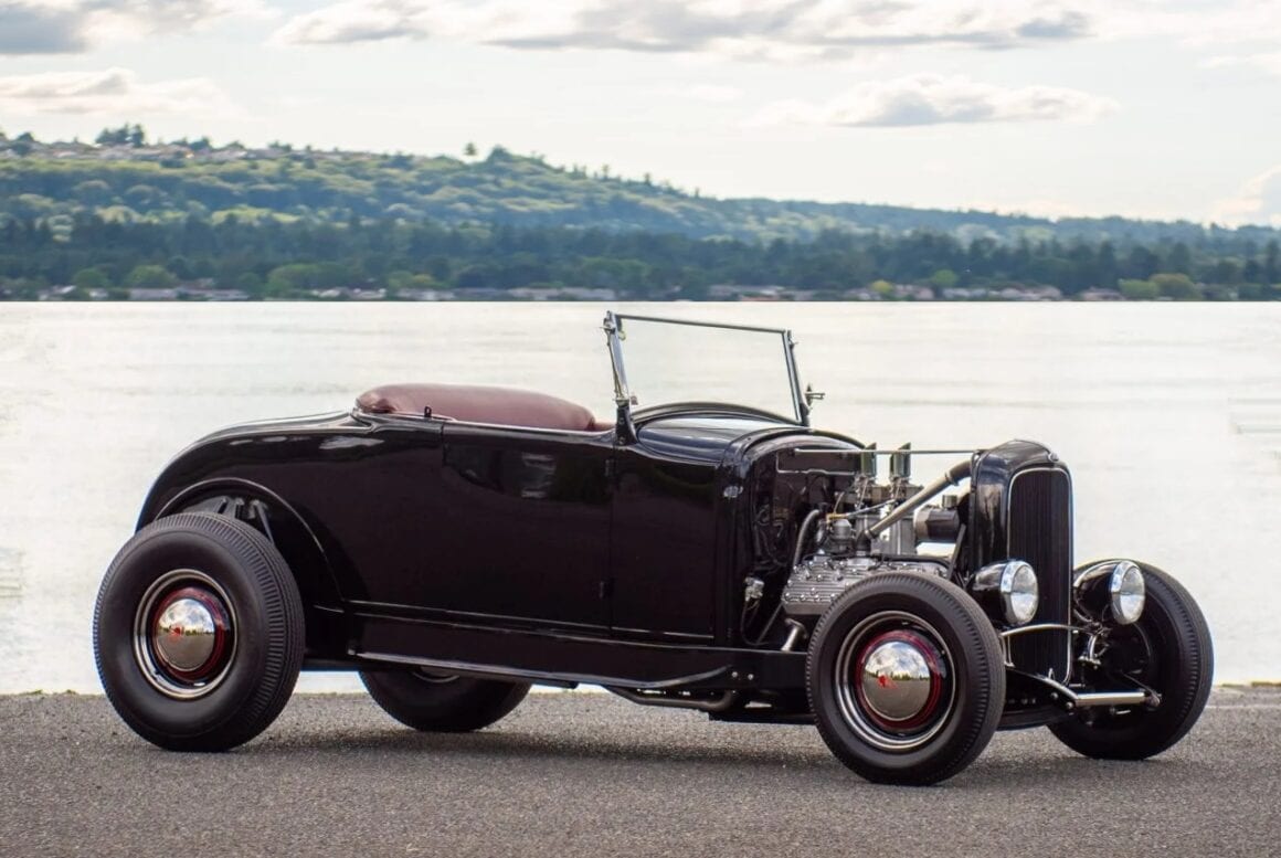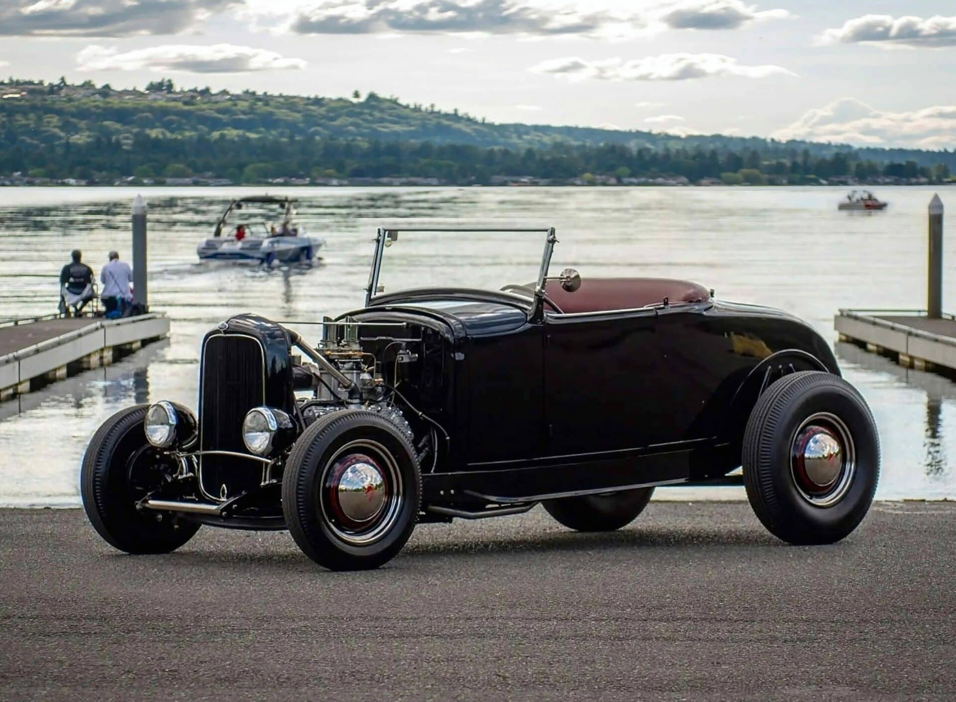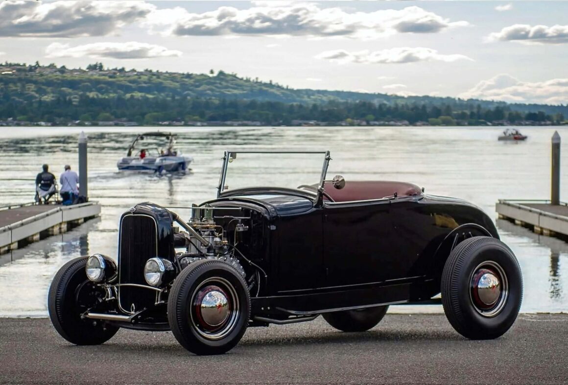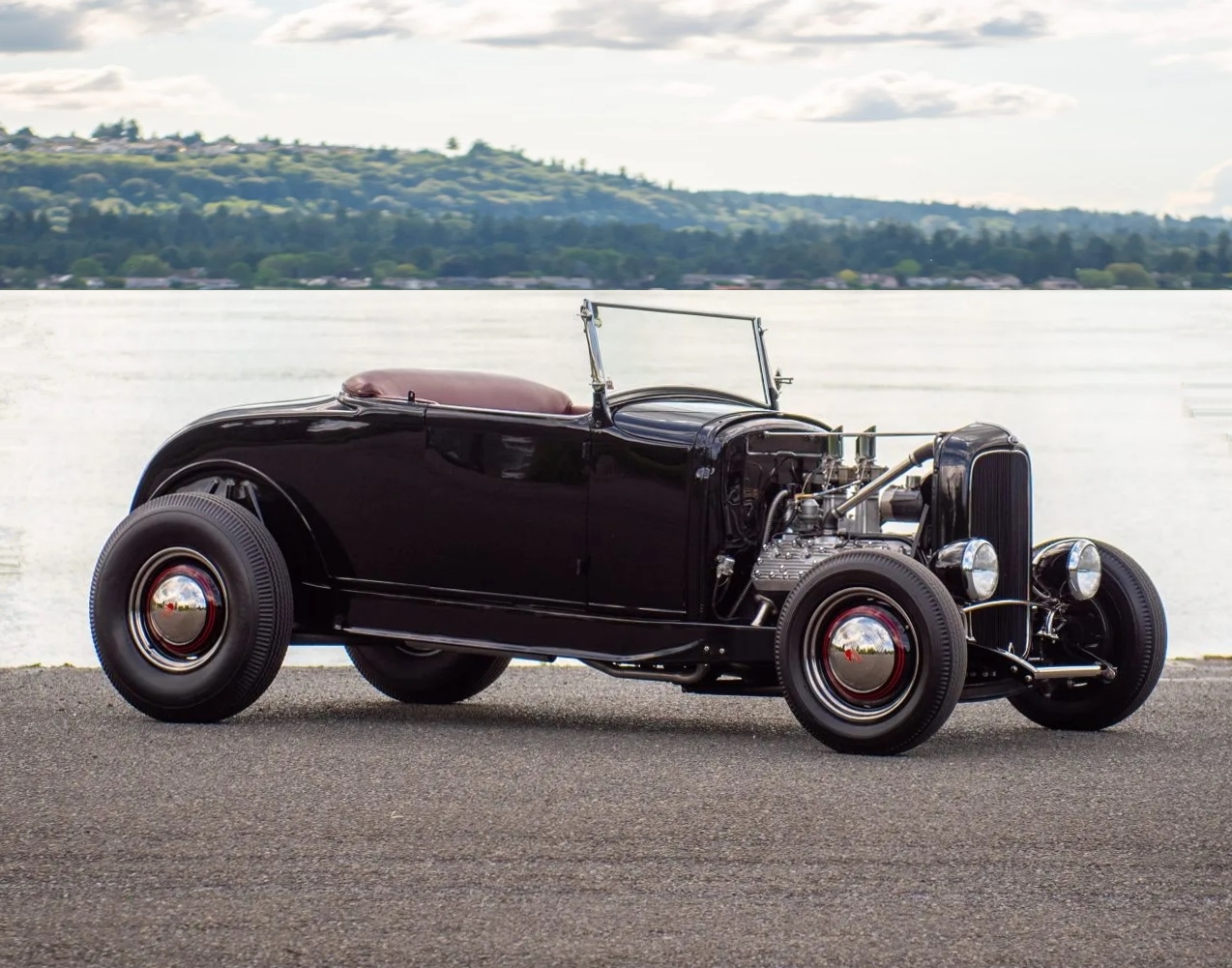 Pour suivre, il y a des jantes en acier de 16 pouces, des freins hydrauliques, une pompe à carburant électrique, des têtes Edelbrock, deux carburateurs Stromberg, des silencieux Smitty, des jauges Stewart Warner et une sellerie en vinyle rouge. Ce Ford Roadster dispose d’un titre de l’État de Washington répertoriant la voiture comme un Roadster Ford Model A de 1932 à carrosserie en acier de Brookville Roadster reproduction 1932.