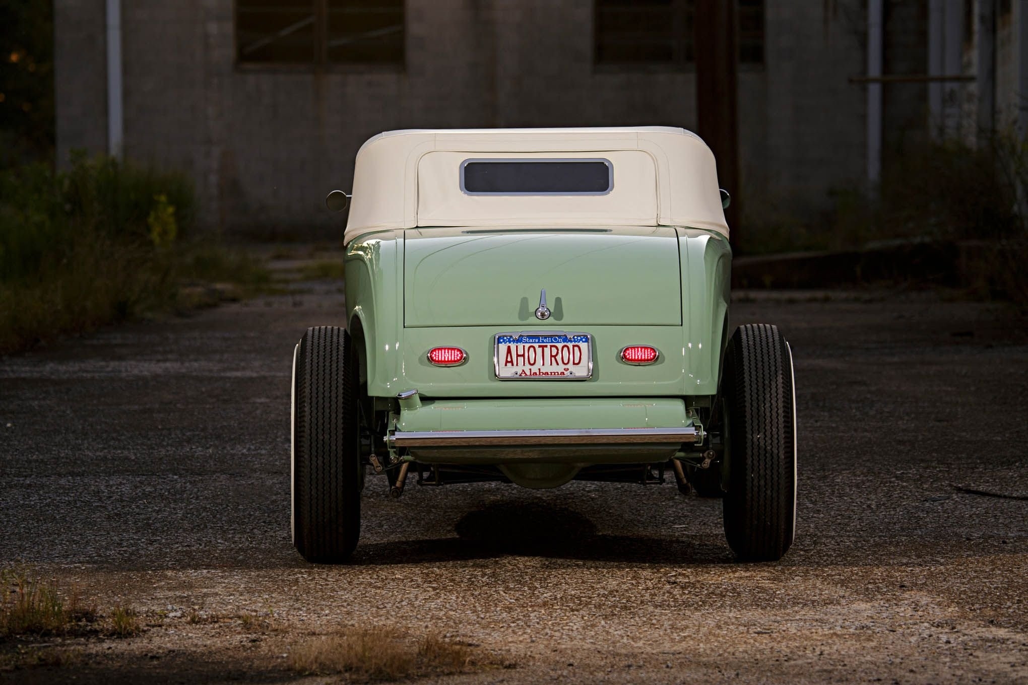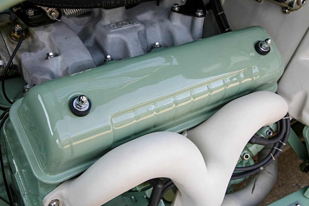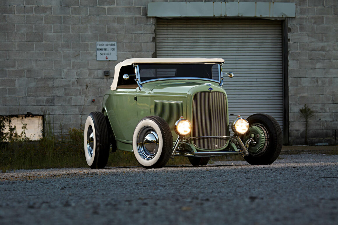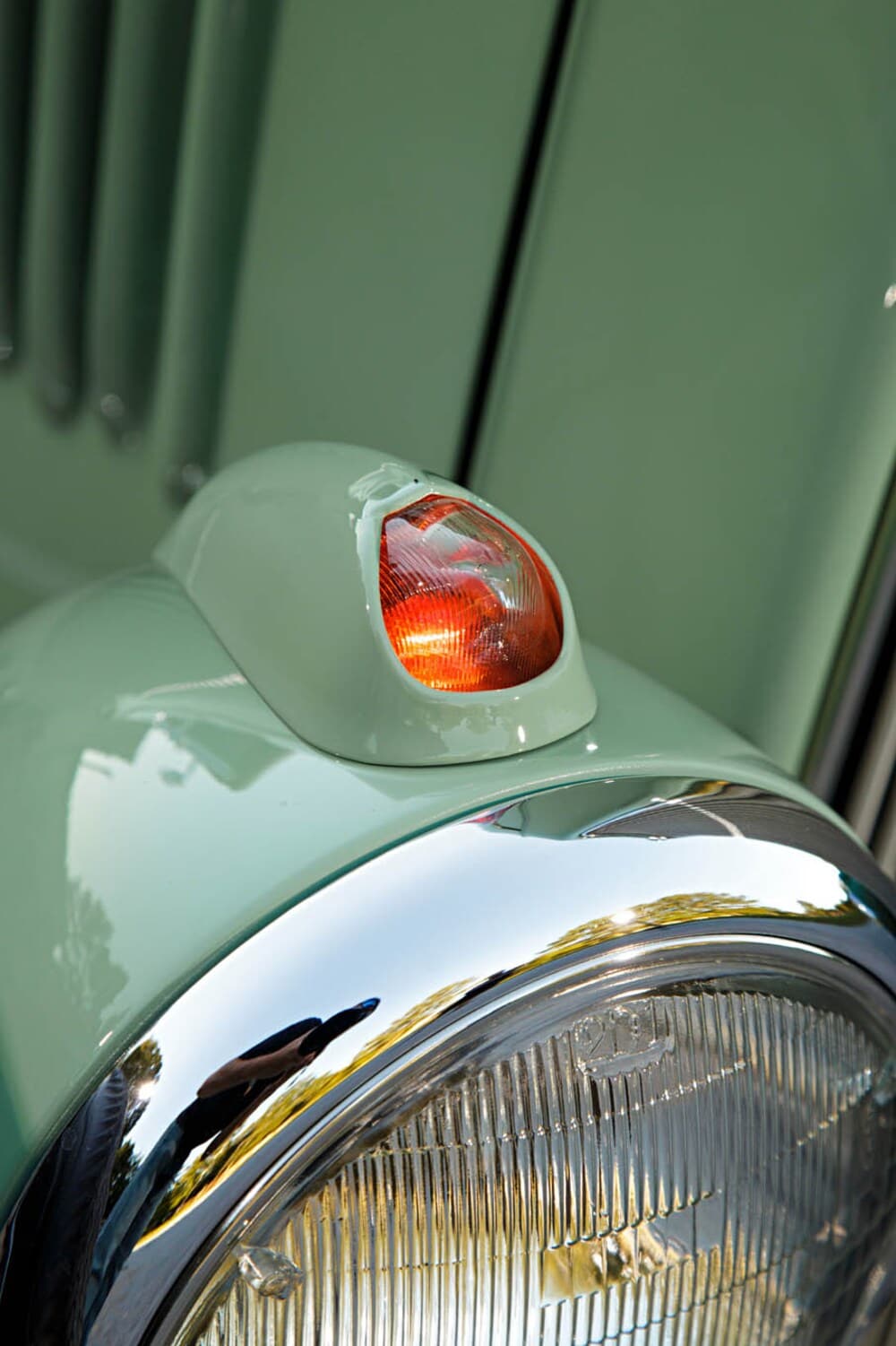 -Elles se sont limitées aux ajustements et à la finition ! Wesley Johnson et Greg Chalcraft de W-J Body Shop ont peint le Rod en PPG Willow Green, une couleur que les personnes plus âgées pourraient trouver rappelant le dentifrice Ipana. Le capot est un Rootlieb de 5cm de plus que la longueur stock avec une calandre Brookville. L’éclairage avant est constitué de phares de chez “Style-Guide”, et les feux arrière sont ceux d’une Ford 1942.