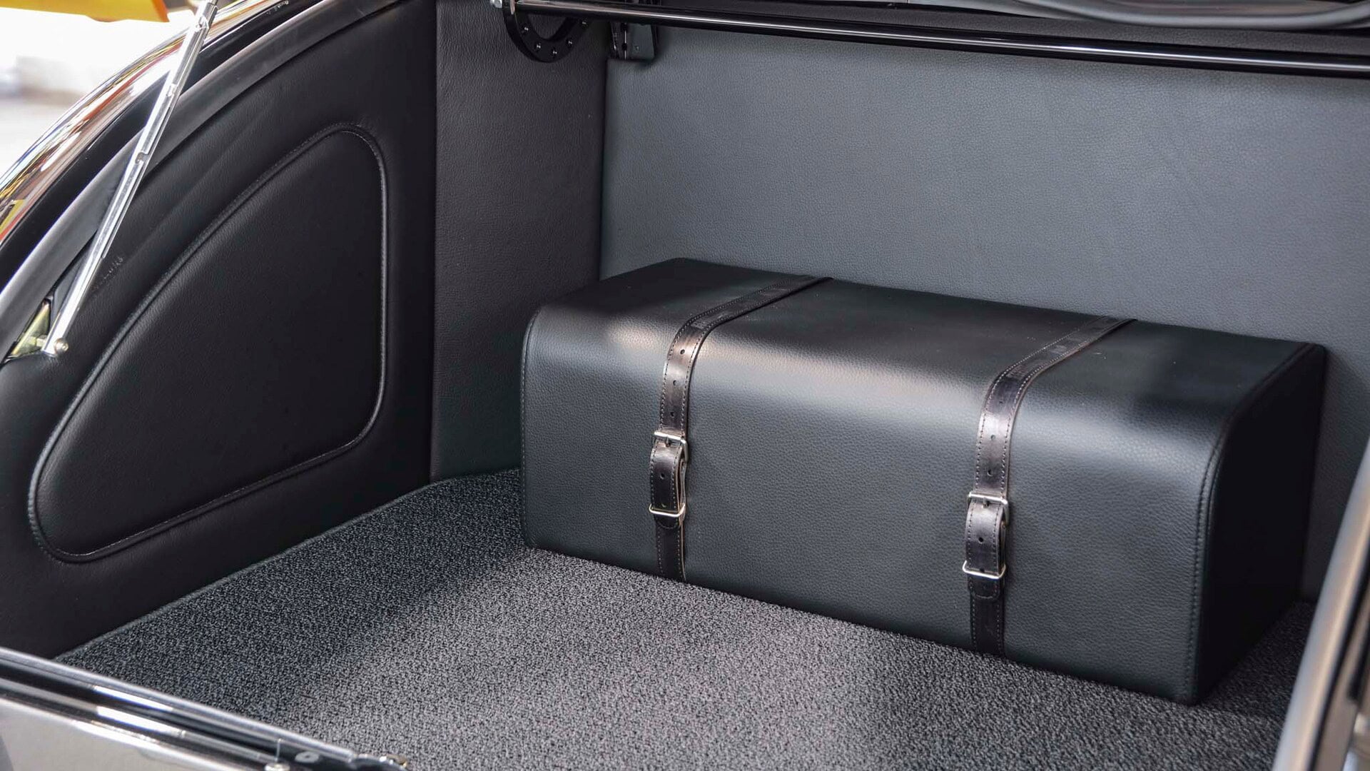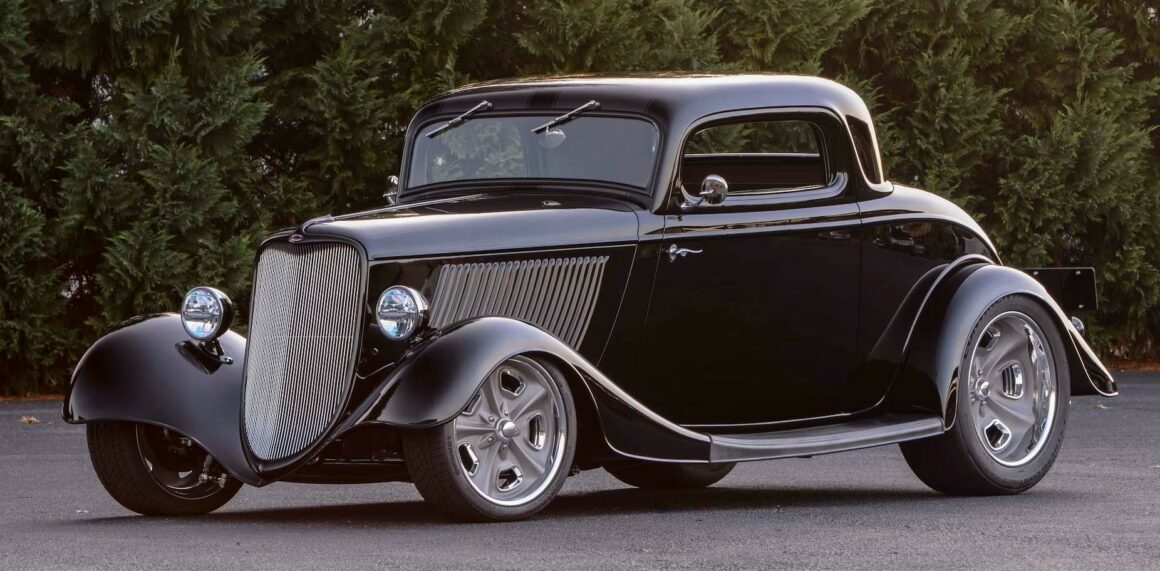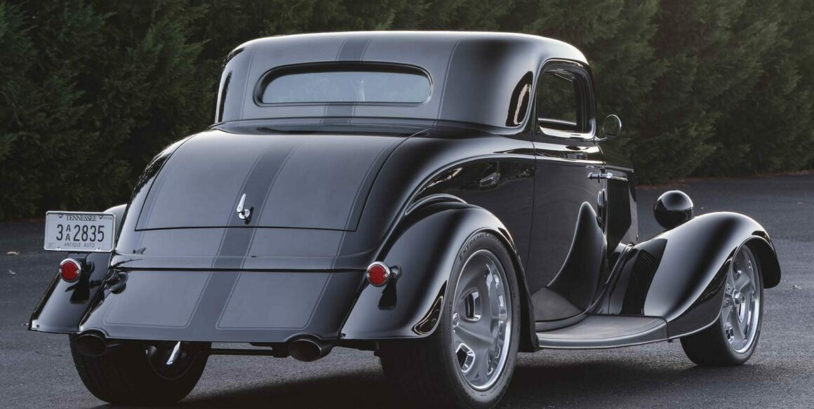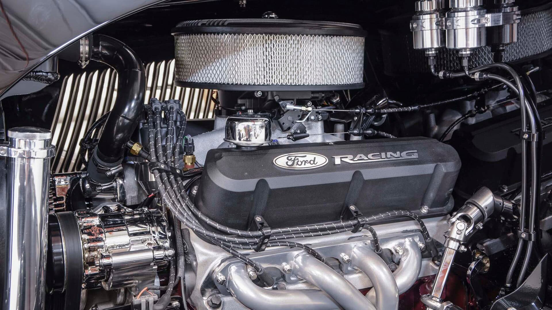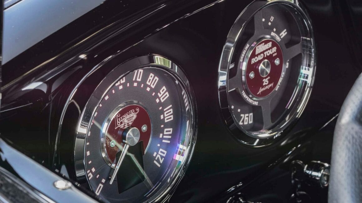 Ce design “miséreux” inadapté, n’est toutefois pas une réplique de la voiture originale, maintenant célèbre sous le nom de “Blue Skunk”… La saveur est similaire, mais de nombreux détails sont différents. La carrosserie du coupé Redneck est fabriquée avec le toit pré-surbaissé. La coque et l’insert de calandre Ford Alumicraft 1933 sur cette voiture, combinés au capot de 1933 (persiennes incurvées contrairement aux persiennes droites d’une 34), sont susceptibles de déclencher quelques débats sur l’année revendiquée de la réplique du roadster, mais c’est un ’34 qui n’a rien de 1934… United Pacific Industries a fourni les ailes avant et arrière en acier estampé de calibre 20, les lentilles de phares à LED et les baquets Dietz, ainsi que les feux arrière à LED.