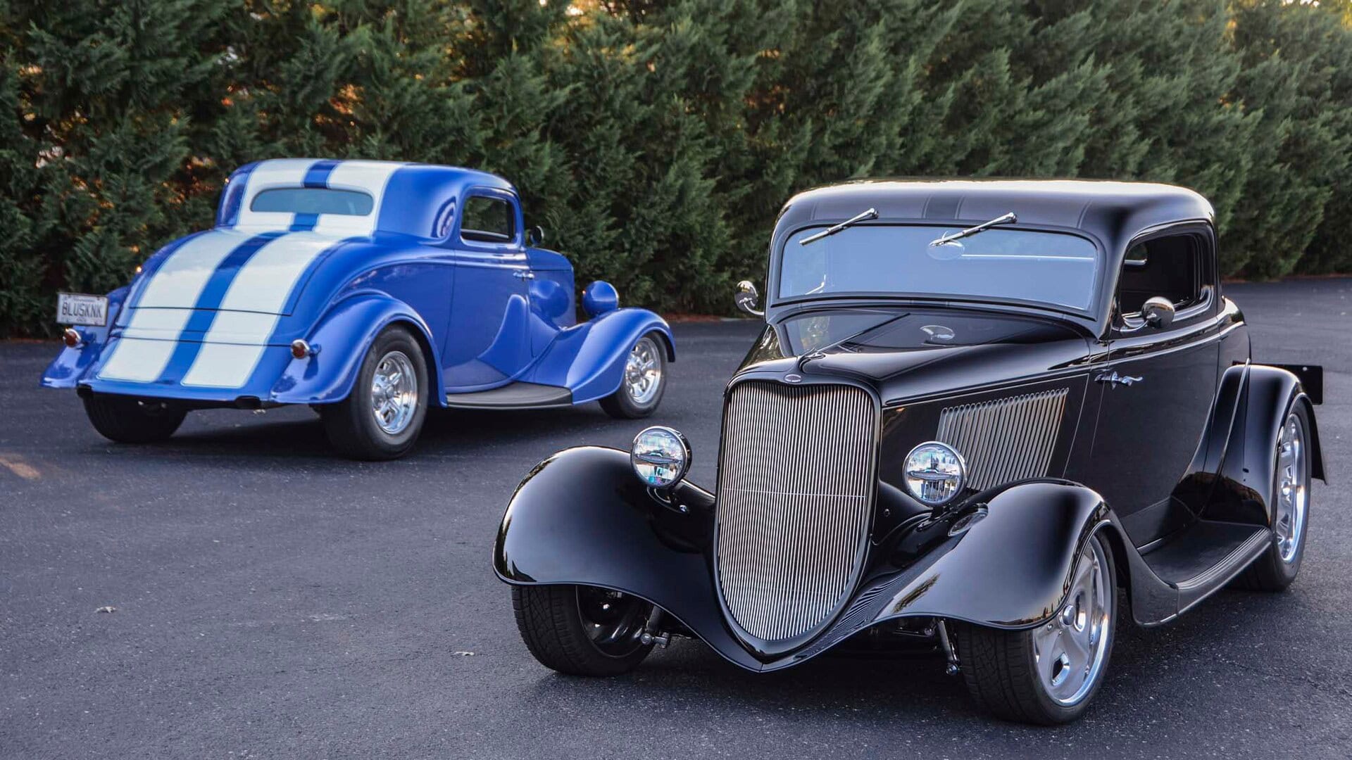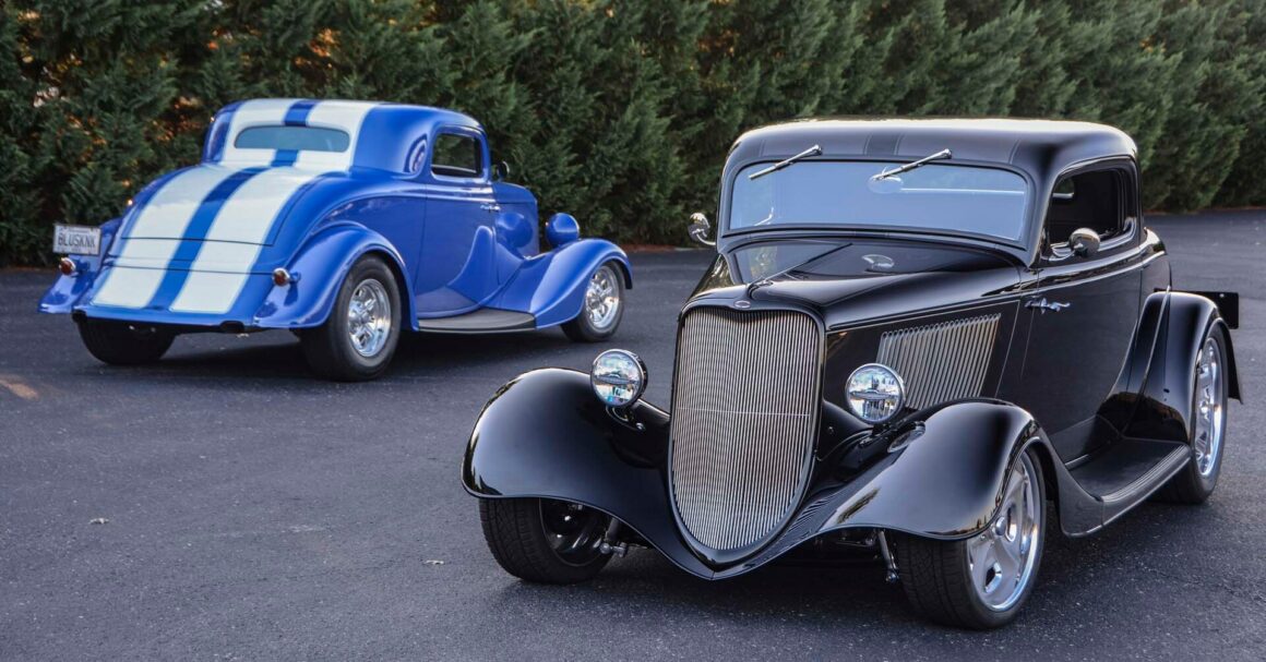 Le premier des deux, le Coupé Ford Three Windows’33 à carrosserie en fibre de verre Redneck, re-construit à neuf au Hot Rod Shop de Lobeck à Cleveland, Ohio était le Hot Rod de Tom McMullen (Street Rodder magazine) avec une peinture accrocheuse, bleu PPG Bonneville et bandes Shelby Racing. Ce Hot Rod coupé aurait été un succès retentissant sur le circuit des salons automobiles, remorqué d’un lieu à l’autre pour des apparitions de célébrités choyées, mais cela n’a jamais été le plan. Au lieu de cela, Jerry Dixey, le gars derrière l’idée de toute la tournée routière (et auteur de la récupération), a conduit ce Rod à divers show’s spectacles, parcourant effectivement 27.000 miles en 82 jours. Mais, après sa saison de croisière à travers le pays sans escale, ce fut le FLOP…