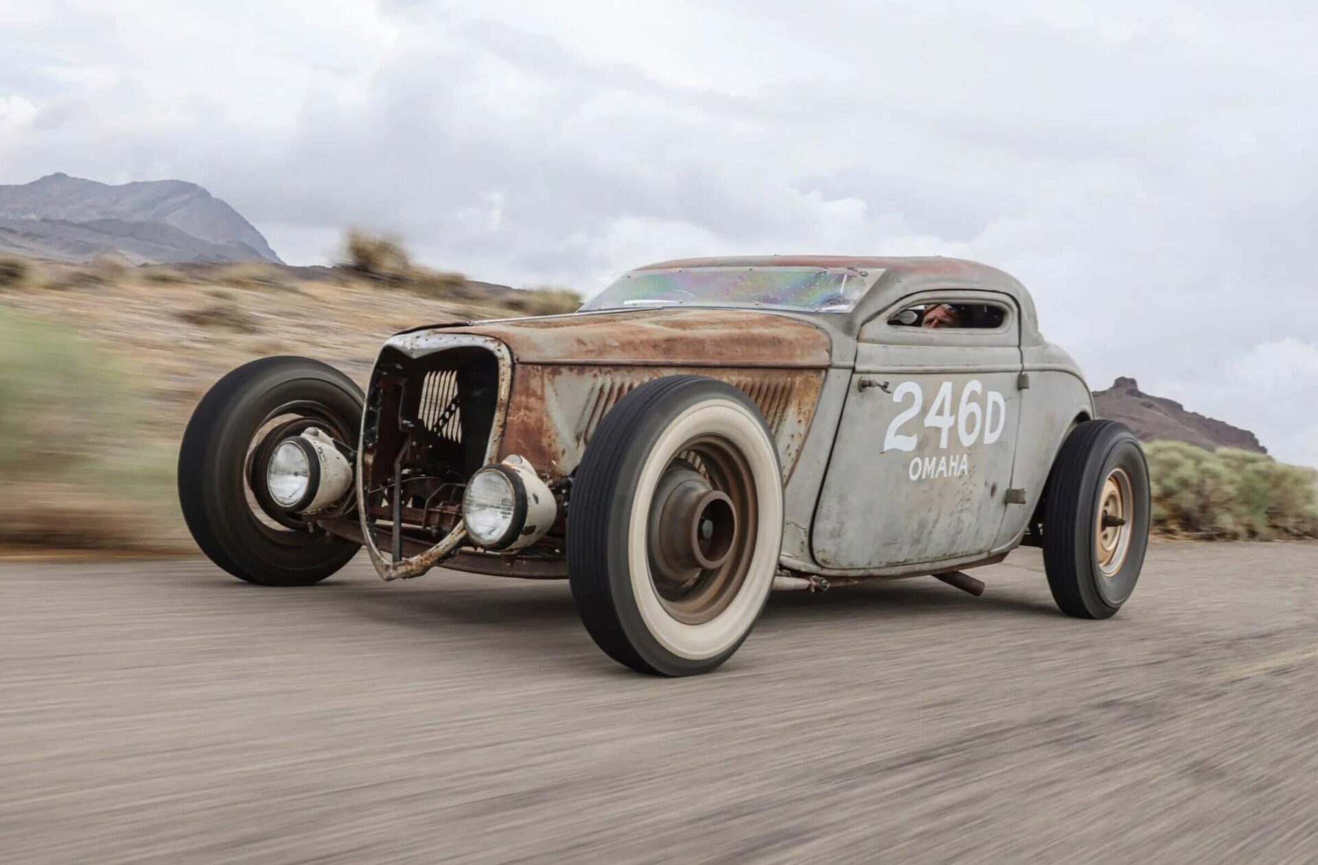 L’Omaha Coupé, comme on appelle ce Rat-Rod, a une longue histoire de “Speed-Sand-Racers” et de “Dragster-trip’s” à travers les États-Unis grâce à une poignée de clubs de Hot/Rat-Rodding dans et autour de la ville d’Omaha, Nebraska qui a donné son nom à une des plages du débarquement des alliés en Normandie (Juin 1944). La voiture a utilisé divers moteurs, suspensions et schémas de peinture au cours de sa carrière, puis elle a été oubliée de l’Amérique car restée loin des projecteurs et des courses pendant plus de 50 ans. Voici comment un Hot/Rat-Rodder très déterminé l’a ramené “à la vie”...
