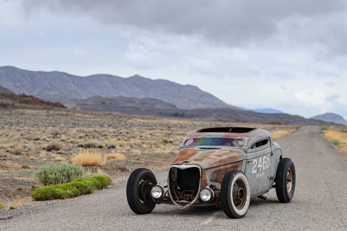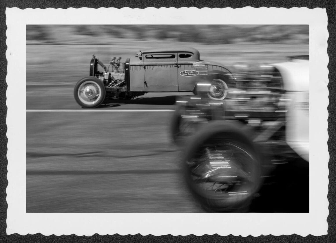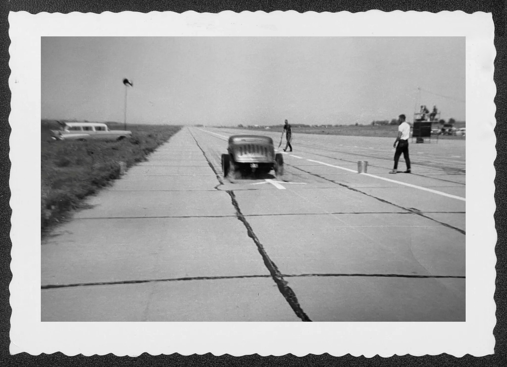 Les photos (ci-jointes) comprenaient environ 20 clichés de la Bonneville Speed Week 1957, une compétition annuelle de courses de dragsters tenue sur un aéroport désaffecté. Les photos ont révélé le coupé en pleine action, avec son véhicule de remorquage Chevrolet de 1957 et son équipe de course, mais, pas de chance, même avec ces nouvelles informations, Tommy Secora n’a pas été en mesure d’obtenir de nouvelles pistes. Incapable de trouver le Rat-Rod de ses rêves, Tommy a acheté un Hot-Rod coupé Ford ’32 trois fenêtres à un ami, un projet sérieux, qui avait besoin d’une restauration totale.