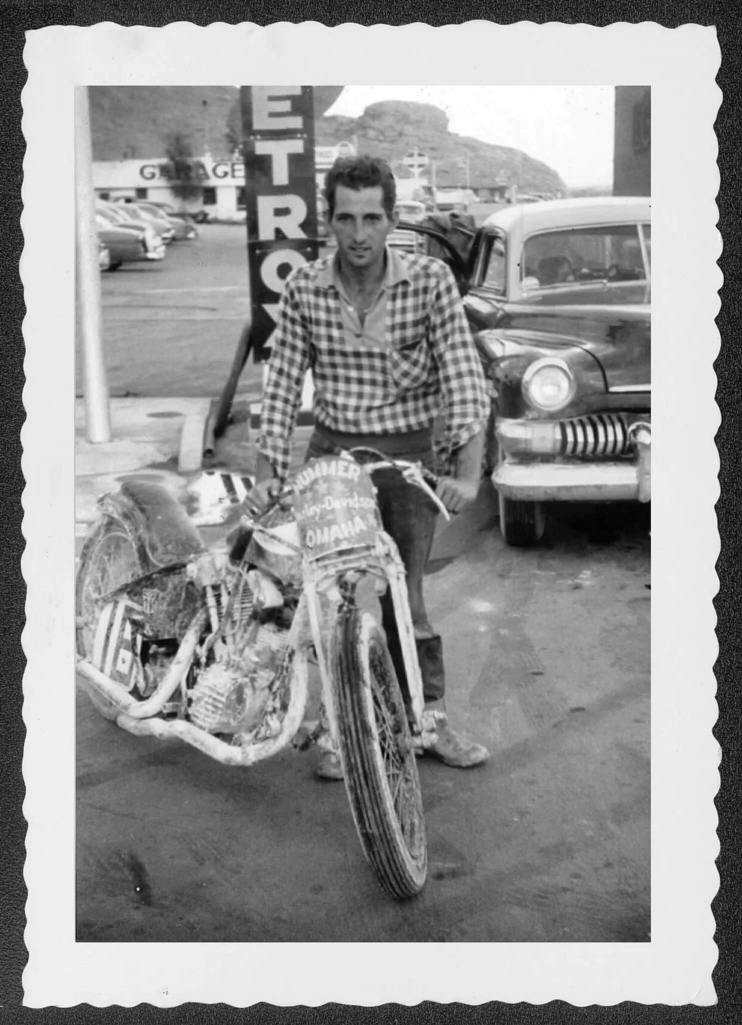En 1990, Tommy Secora (photos ci-dessus) pilotait sa moto dans une des ruelles de la ville d’Omaha et il est tombé en presque catalepsie sur un Rat-Rod Coupé Ford ’33 ce qui l’a arrêté dans son élan. Le Rat-Rod venait d’être poussé hors d’un garage aussi vétuste que le bâtiment. Il avait été construit pour “faire des courses amateur”, soit sur lacs salés ou soit “de rues”, les fameux grands-prix de feux de trafic en feux de trafic qui ont fait le bonheur de plusieurs films “navets” des années cinquante. Ce Rat-Rod avait un toit radicalement surbaissé, un look décalé décontracté et un “capot de coffre rempli de “louvers” .
