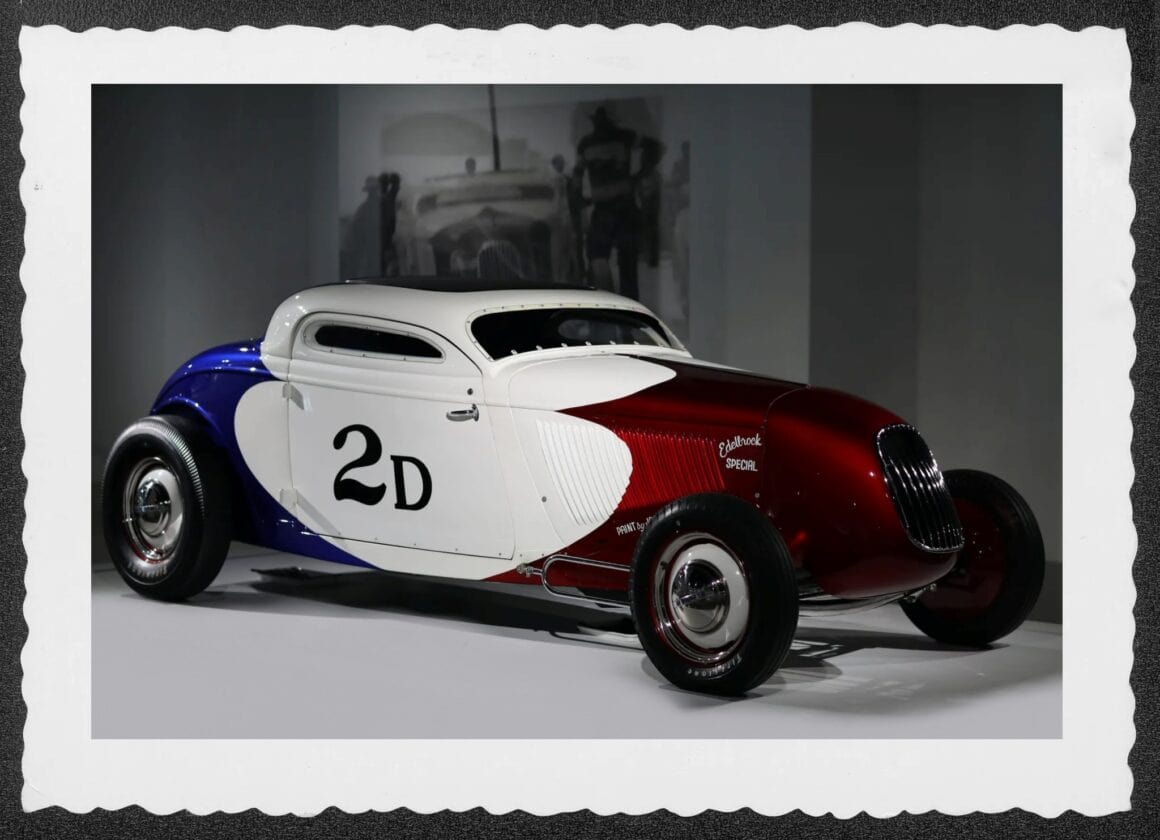 Le coupé Ford était en possession de Bob Hartwell lorsque son toit a été surbaissé. Comme Bob Hartwell avait vécu en Californie, il avait été inspiré par le coupé des Pierson Brothers, qui comportait également un toit radicalement surbaissé (voir photo du “2D” bleu, blanc, rouge ci avant). Bob Hartwell avait acquis la réputation d’être le propriétaire de l’une des voitures les plus rapides de l’époque : l’Omaha Ford 1940 à moteur Oldsmobile. Peu de temps après, Bob Hartwell a eu maille avec la police locale pour s’être déchaîné dans les rues d’Omaha dans l’Omaha Coupe (ca fait gag, mais c’est authentique)….