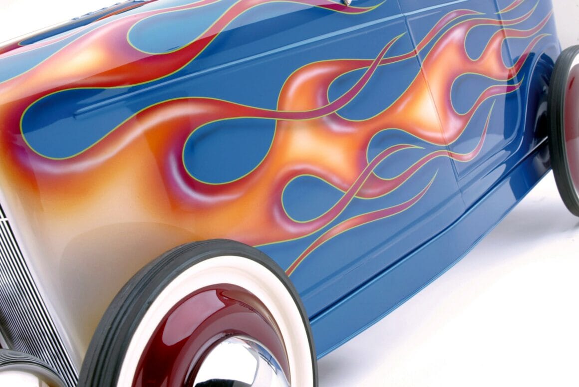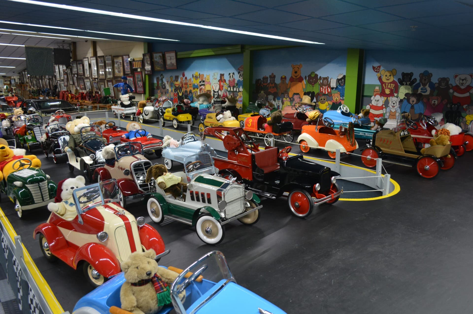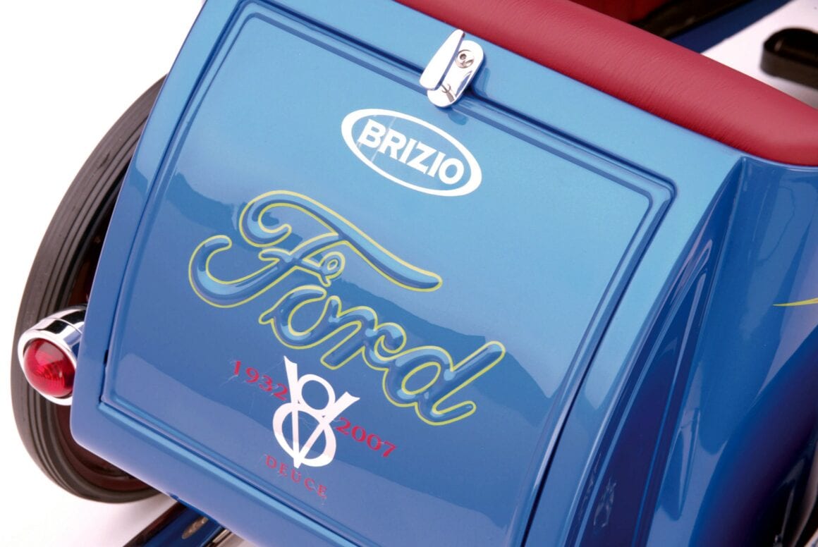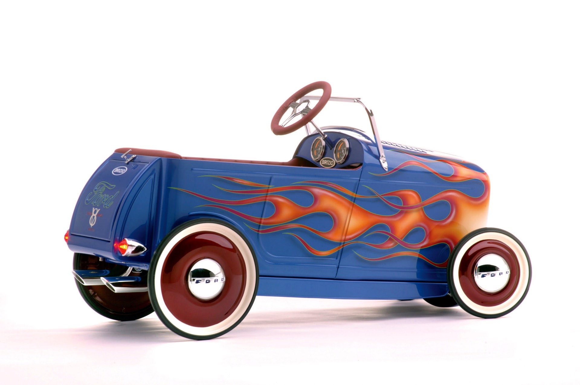 Les voitures à pédales que vous voyez illustrées ici sont pour la plupart mes vieux jouets restaurés qui m’ont poussé à écrire tout ce qui précède. L’un d’entre-eux, bleu clair avec flammes est l’œuvre unique de Roy Brizio Street Rods, l’un des constructeurs de Hot-Rods parmi les plus connus et respectés aux États-Unis et dans le monde. Le design est basé sur une Ford’32 Hi-Boy, avec une carrosserie entièrement métallique, des enjoliveurs chromés, deux (fausses) sorties d’échappement, des clignotants Arlen Ness, des phares et des feux arrière fonctionnels. Voilà, voilou ma “Filousophie”, mais bof ! J’en termine ici, la vie est courte, ne perdez plus votre précieux temps !