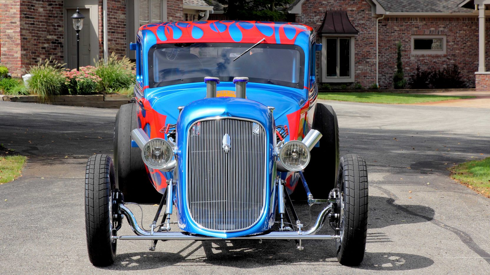 Moteur V8 472ci Hemi – Compression 12:1 – Injection mécanique Hilborn – Keith Black têtes en aluminium et zoomies – Transmission automatique – Châssis tubulaire avec arceau de sécurité complet – Couleur Perle bleu intense avec flamme rouge – Chassisworks 4-link – Coilovers AVO avec réglage – Extrémité arrière Moser de 9 pouces avec rapports Richmond 4.56 – Chrysler A727 Transmission automatique Torqueflite – Freins à disque Wilwood Racing – Pneus Hoosier Quick Time Pro – 1ère place Detroit 62nd Autorama Hot Rod Show trophée – 1ère place aux trophées World of Wheels de Birmingham, Alabama et Chattanooga, Tennessee – Trophées NOPI Nationals Supershow – Sélectionné pour le t-shirt ‘Pigeon Forge Run”