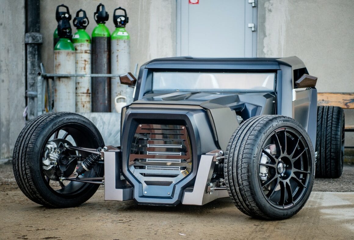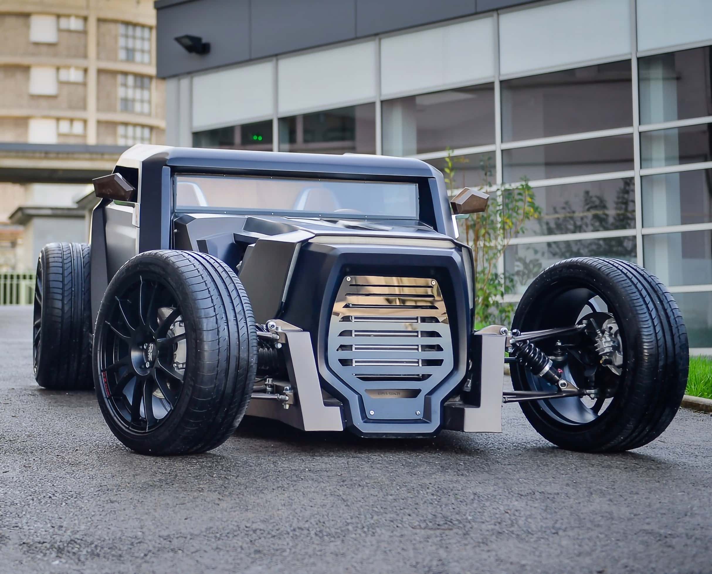 Combinant l’un des styles les plus hors-la-loi de la culture automobile – le hot rodding – et un design semblable à celui du bombardier furtif, le concept Sbarro EIGHT est né. Si un coupé Ford 3 fenêtres de 1932 s’accouplait à un Lockheed F-117 Nighthawk, ce serait leur progéniture. En créant l’EIGHT, les étudiants ont fait une pause dans les conventions, troquant le corps métallique incurvé des hot rods traditionnels pour un design très facetté et dentelé. Construit à partir de zéro en seulement 40 jours, le Sbarro EIGHT est le point culminant de l’énergie teutonique de l’étudiant, et il suinte la menace. Lorsque l’occasion d’alimenter la création avec un V8 Maserati biturbo de 3,2 litres, ils ont sauté sur l’occasion. Cela convenait bien à la folie du concept de design, mettant 368 chevaux italiens en colère au travail aux roues arrière. Il faut un certain temps pour s’habituer à voir ce trident Maserati à travers l’évent du capot d’un hot rod. Un hot rod français au cœur italien ? Pourquoi pas? Le moteur a été offert aux étudiants par le fondateur de l’école, Franco Sbarro, qui l’a acheté à partir d’une épave de Maserati 3200 GT. La voiture a été totalement détruite, mais Sbarro a décidé que le moteur méritait une nouvelle vie.