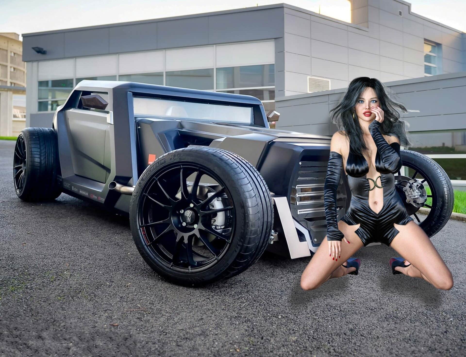 Dans la vie, pour les gens “classiques”, “bien-pensant” et “politiquement-correct”, il n’y a que deux sortes de jeunes, les petits branleurs, tous coiffés comme le dernier des footballeurs professionnels trépanés, la crête au vent ou la mèche impeccablement plaquée sur leurs crânes de piaf… et les petites branleuses, avec un Qi d’amibe, toutes de pures connasses qui rivalisent de stupidité et ont de gros nichons, certaines ayant les jambes comme l’arc de triomphe (mais leur poilu n’est pas inconnu)…. Les gars se la jouent Brad Pitt du pauvre… et les conasses (surtout les blondasses à l’intelligence “mamairiènne”), se la racontent genre Anne Roumanoff sur un fond musical bruyant (très) joué par des mongoliens manchots, avec un zeste de gore pour faire trembloter les bourgeois ! Ce n’est pas ainsi que Pawel Wisniewski et Jans Shlapins ont créé virtuellement ce Hot-Rod magnifique, qui arrive à dilater le temps de manière impressionnante… Pawel a fourni les esquisses, tandis que Jans les a transformé en 3D (c’est ce que vous voyez ici)…, le concept est net mais malgré tout assez flou…, il semble avoir été conçu pour le combat furtif plutôt que pour des balades “cruising”…