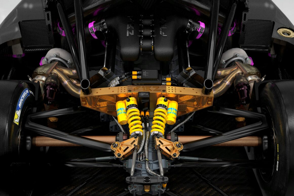 Il a par exemple refait toute la saga de ma LéaFrancis dans un “Bim’s” d’envergure qui mérite d’en publier un livre… Mon “Platon” IA connait tout des logiciels afin de mieux créer “LE” Hot Rod ultime, qu’il prétend être “La Machine la plus folle dont j’ai pu rêver avoir depuis presque toujours”… C’est dans cet esprit qu’on s’est poussé l’un l’autre à un nouveau niveau, surtout quand est venu le temps de développer le moteur V8 biturbo monté en position centrale et la transmission. Ce fut sa partie préférée, et j’adore le résultat. En s’inspirant d’une variété de voitures de course hardcore, a été construit une configuration tout aussi hardcore avec le moteur et la boîte-pont comme éléments sollicités, une suspension “pushing”, des turbos en “miroirs” et une plaque moteur en alliage anodisé or massif comme élément visuel clé. Ce fut dingue et amusant à développer et j’adore le fait que la palette de couleurs saisissante s’est développée de manière organique de manière imprévue, avec des éléments inspirés des pièces de suspension anodisées dorées que j’avais vues dans les voitures de course LMP, et les Wiggins violettes, offrant une touche de couleur contrastée, séparées par les couvercles d’admission et les soupapes noires. Dans le cadre de l’apprentissage de nouvelles compétences 3D, j’ai essayé l’incroyable programme de CAO (conception assistée par ordinateur) Fusion 360…