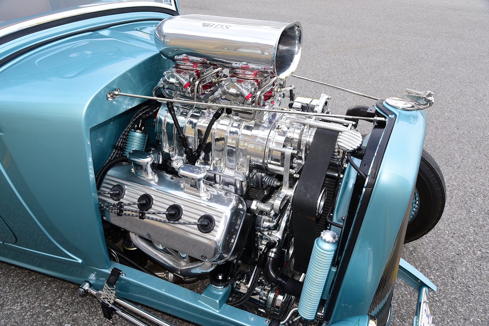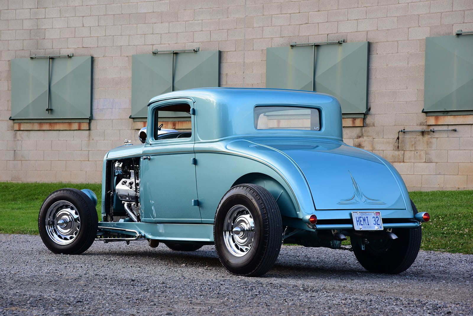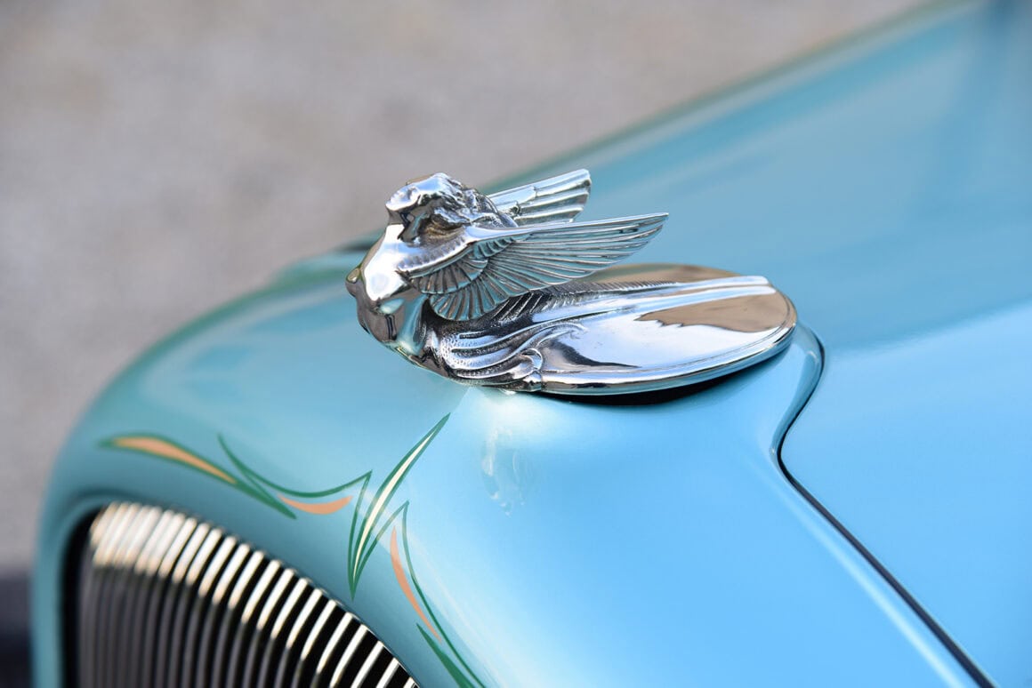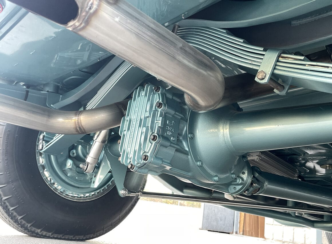 Quoi sont-ils ? Purée d’marde, z’en avo rien à faire. J’vous l’écrit quand même… Des Quick Fuel Q-Series 750-cfm couronnés d’une cuillère BDS. De pluche, avec l’état dégradé de la tôle de la Plymouth, il fallait un vrai maître carrossier pour tout ramener à la vie. Rob Allison de Pinhead Metal Craft à Elmira, Ontario, Canada, s’est attelé à la tâche… Bin dans son temps… Quand est v’nu le temps de donner au coupé une élégance subtile, la femme de Paul, Raquel, a choisi la teinte Ford Seafoam Green de PPG… Pour une allure qui corresponde au reste de la construction, le tableau de bord a été lissé et traité avec un tableau de bord Dodge’36 rafraîchi, converti en Plymouth par l’équipe de Classic Instruments pour surveiller les signes vitaux. Un volant Plymouth de 1946 restauré par Vintage Performance a été monté sur une colonne inclinable idididit pour tracer le parcours…