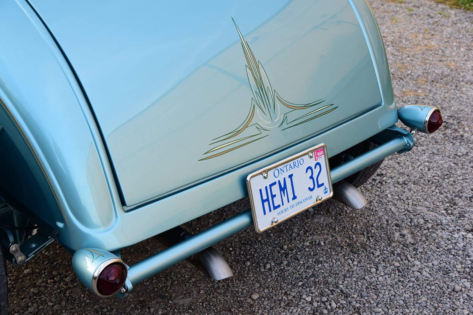 Je terminerai, en guise de conclusion, avant d’attaquer (par le cul) mon texticule concernant un Nième Hot Rod, convenant d’un classicisme trop aigu pour être véritablement malhonnête, mais les valeurs sûres, même les plus surannées, sont une garantie de réussite. Souvent, cette influence vous suit dès votre plus jeune âge, ouvrant un chemin vers l’inconnu qui est souvent probablement un masturbateur compulsif ex-lecteur du mag’Nitro ne s’en étant jamais remis… C’est le cas clinique de Paul Barber de Milton, Ontario, Canada, qui a passé beaucoup de temps à grandir en tant qu’assistant dans le magasin de pièces automobiles de son père, entouré de nombreux Hot-Rods, Kustom’s et Muscle-cars ainsi que de leurs propriétaires. Avec une famille dévouée aux produits Chrysler (c’est clinique mais pas pris en charge par la Sécu), il n’est pas étonnant qu’il ait emboîté le pas au fil des décennies avec ses derniers efforts.