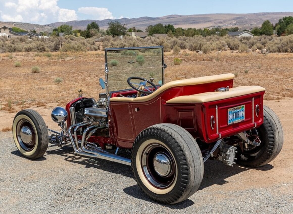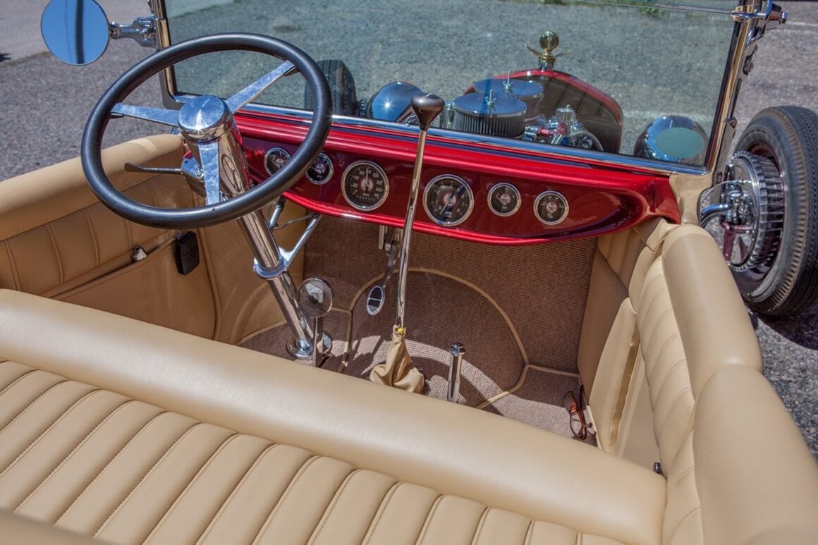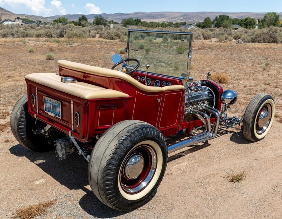 Une fois la peinture sèche, Steve Cleveland de Steve’s Custom Upholstery a créé l’intérieur beige camel et a aidé Rusty à mettre la touche finale à la voiture. Depuis lors, Rusty remplit régulièrement le réservoir de 10 gallons, assistant aux Hot August Nights et à une variété d’autres salons de l’automobile locaux de Reno avec ses amis du club Classic Chevys of Reno. Lui et Bonnie ont même chargé le T-Bucket et ont fait le voyage vers le sud jusqu’à Pomona pour le 50e anniversaire du L.A. Roadsters Show. Buford 2 a été un grand succès, et il est aussi amoureux de cette nouvelle création qu’il l’était de l’original.