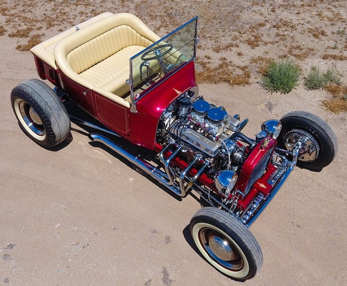 Il dispose également d’un boîtier de direction Corvair inversé et d’un maître-cylindre Corvette. La puissance provient d’un V8 Buick Nailhead 441ci avec une transmission automatique Turbo Hydramatic à trois vitesses, et à l’intérieur se trouve un levier de vitesses Lokar, une colonne de direction Borgeson, une moquette allemande à tissage carré et un volant Bell. Voilà, il y a encore à en écrire, mais j’estime que s’en est plus qu’assez compte tenu de l’enthousiasme que je ne sens pas en vous de construite un T’Buckett… Sans préjuger que j’ai tapoté cet article pour les couilles du Pape, je préfère en terminer ici…