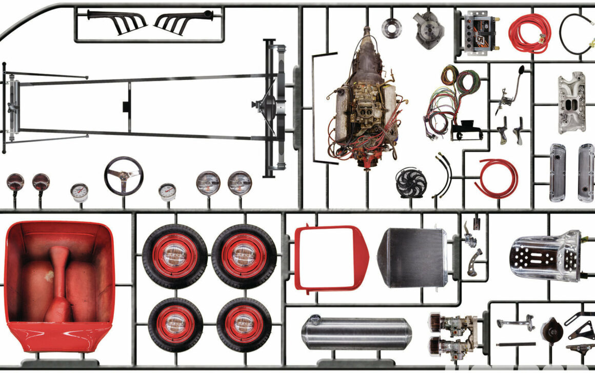 Construire des modèles réduits en tant qu’enfant impliquait principalement d’attendre que la peinture sèche, et les kits pleine grandeur nécessitent un peu de la même patience, mais le gain lorsque vous pouvez le conduire hors du garage est bien meilleur. Voici la liste des pièces nécessaires et leur prix de vente magasin, hors taxes et frais d’envoi (de transport)… Hot Rod Tribute T Kit cadre et carrosserie : 3.999,99$ / Kit de frein à disque avant : 294.99$ / Radiateur Walker Z-Series pour T-Bucket : 799.99$ / Coque de calandre en T (extra profonde) : 99.99$ / Réservoir de carburant en aluminium : 134.99$ /