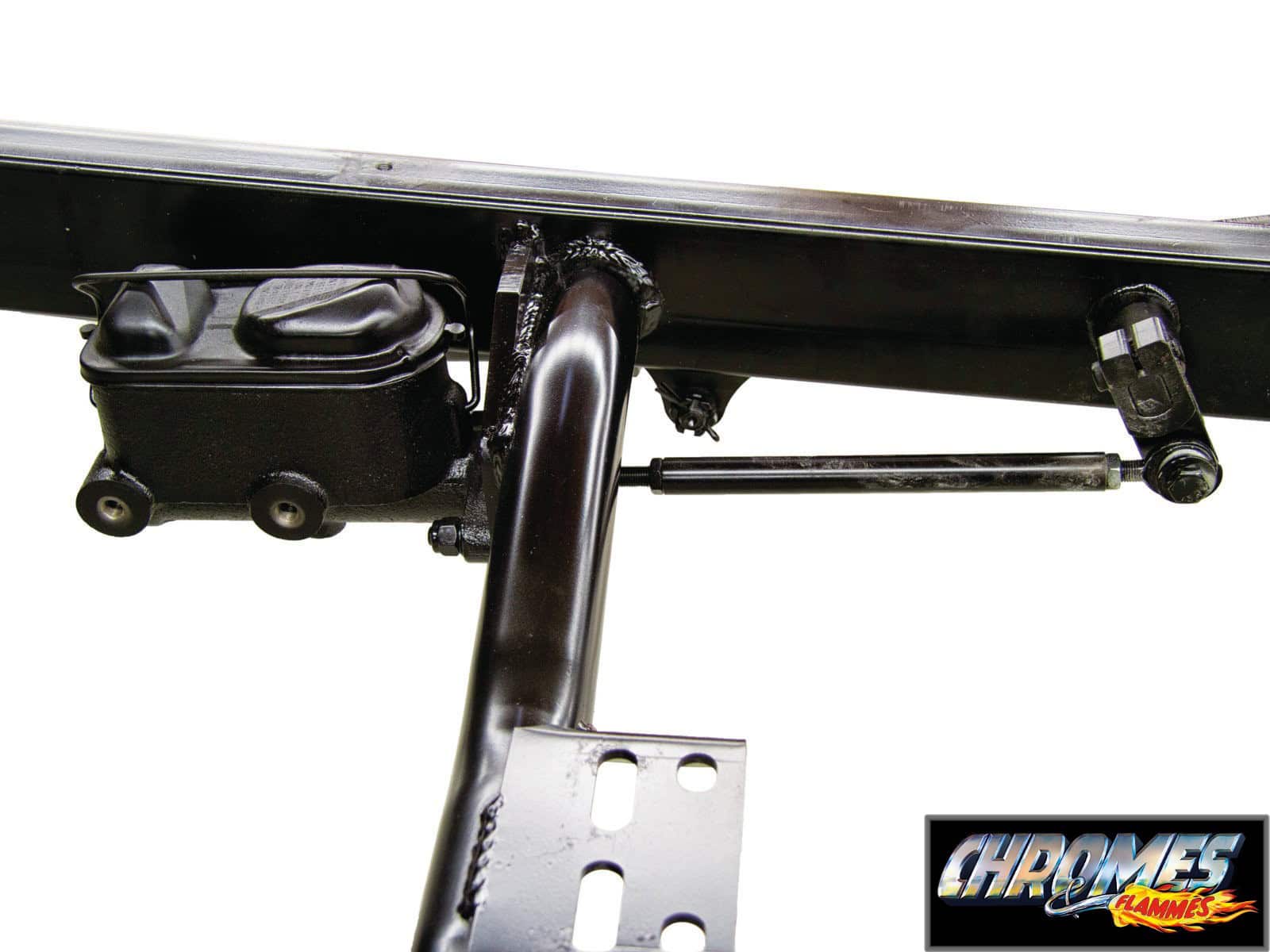 Sont également disponible un boîtier de direction Corvair inversé et un maître-cylindre de frein avec le support de montage et la pédale. Mais comme tous les enfants modélistes Monogram ou Revell de huit ans déçus le découvrent à Noël, tout le reste n’est pas inclus… Cependant, Speedway offre en supplément financier tout ce dont vous aurez besoin pour compléter le Hot Rod, du pont-différentiel de 9po aux phares… Quelques écarts par rapport aux composants recommandés par Speedway, mais basés sur des préférences de style et d’autres basés sur ce que les Hot Rodder’s fanatiquent veulent dans leur garage.