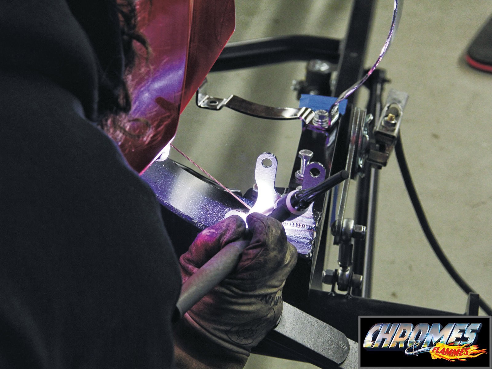 Le moteur est actuellement surmonté de deux carburateurs Edelbrock Performer de 600 cfm, mais Rusty assemble des Stromberg 97 pour construire un système d’admission avec six double canons. “Avant, nous jetions les Stromberg !”, se lamente-t-il, “mais aujourd’hui, ils valent leur pesant d’or. C’est plus une question de nostalgie à ce stade-ci que de performance totale”... Pour rester dans ce thème, il n’y a pas d’accessoires de billettes, de compteurs numériques, de combinés filetés ou de direction à crémaillère sur son Buford 2. Il y a cependant assez de chrome pour satisfaire les fantasmes de n’importe quel adolescent.