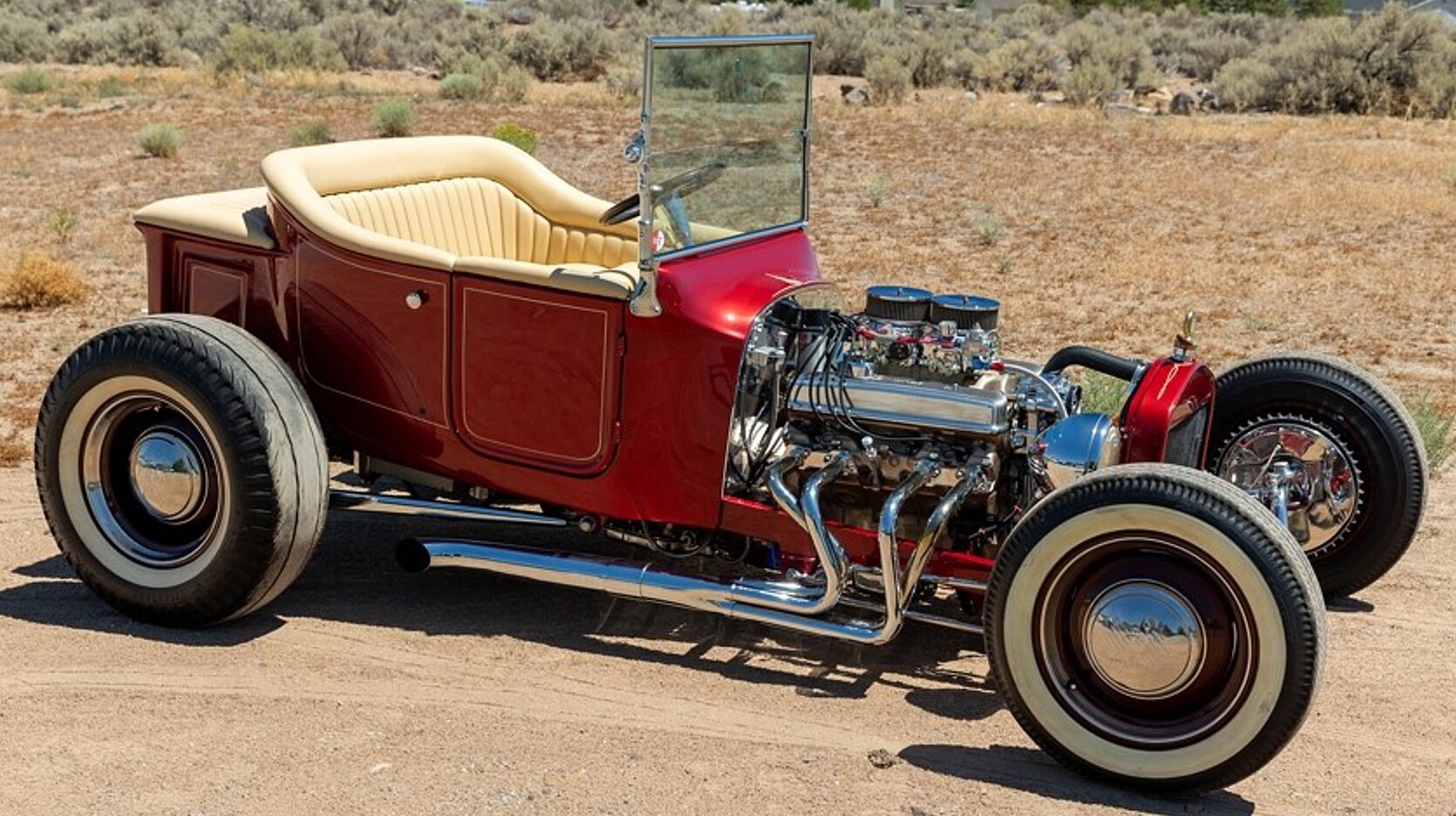 Cette Ford est un roadster T-Bucket construit à partir de zéro qui a été inspiré par une construction achevée par le père du vendeur lorsqu’il était au lycée. La carrosserie en fibre de verre est montée sur un châssis en caisson de 3×2po sur mesure, et le Hot Rod roule sur une suspension personnalisée avec une extrémité avant suicide, un essieu abaissé Magnum de 4po, des tiges de rayon Total Performance, un ressort avant SuperSlide et un ressort Posies Model A à l’arrière. Les roues décalées de 16po Vintiques sont montées sur des freins Wilwood à tambour Buick à l’avant et des tambours Lincoln à l’arrière.