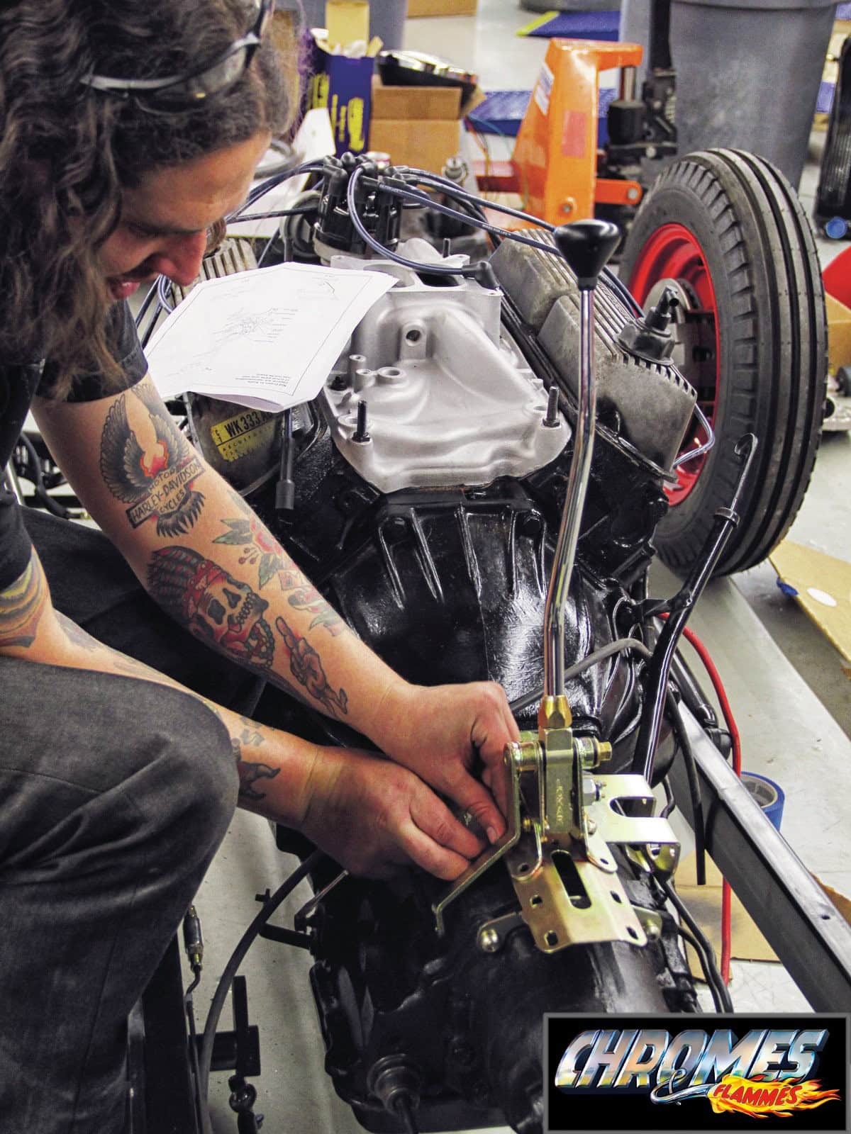 N’est-ce pas là l’essence même du Hot Rodding ? Tout un Hot Rod peut être monté en trois jours, et bien qu’il se soit passé beaucoup de choses au cours de ces 72 heures, il a faudra encore trois semaines de bricolage ici et là pour le terminer. Dans le but de rester à l’écart les uns des autres pour ne pas perdre leur temps en papotages, chaque membre du personnel à en charge une partie différente de la construction d’un Hot Rod qui représente fondamentalement le même job à effectuer pour n’importe quelle taille voulue… Ils expliquent aux clients qu’il leur faudra d’abord poncer et peindre des pièces…