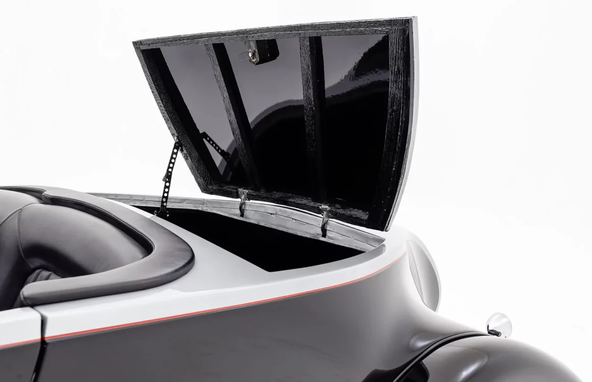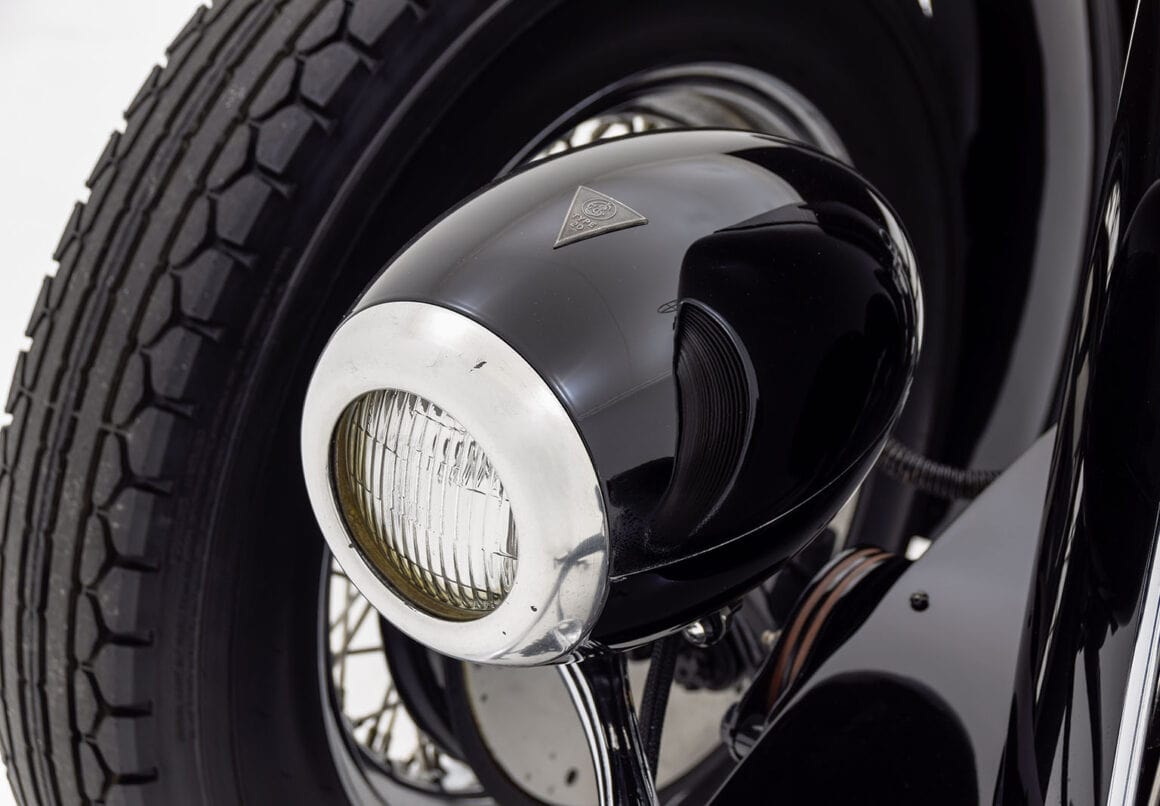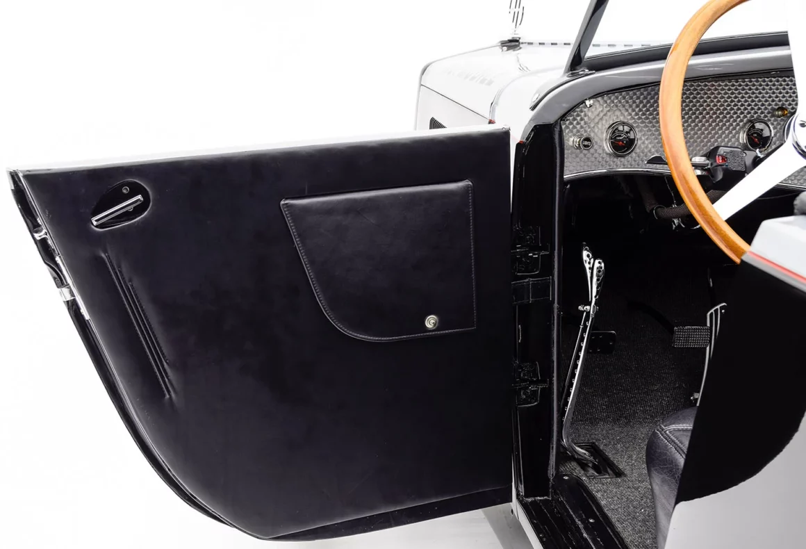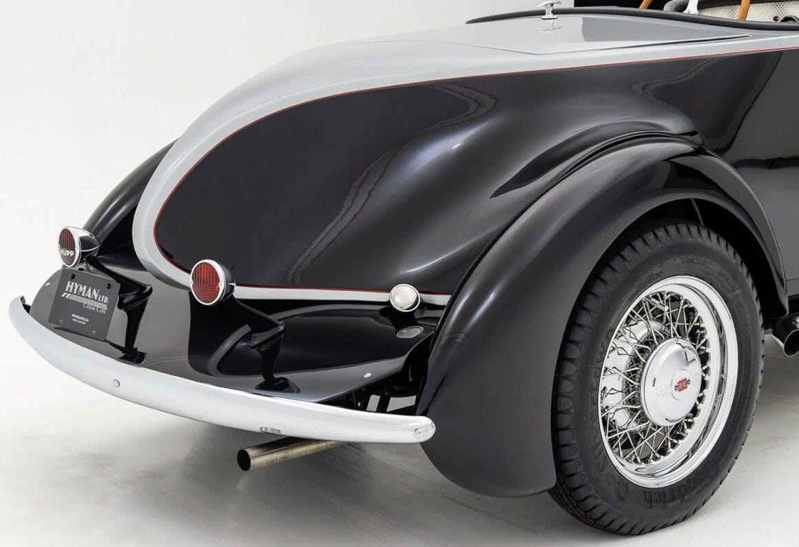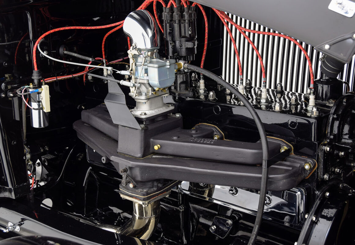 La “Bonneville’Hupp” a ensuite été vendue à Rick Blomquist, qui, avec son fils Cord, a commencé une restauration complète. Achevé en 2017, le fascinant speedster est maintenant dans une spécification très proche de la dernière fois qu’il a couru à “Bonneville Salt Flats”. Peut-être tout aussi impressionnant que la restauration de haute qualité est l’étonnant dossier historique, avec le titre original du Colorado de 1932, et des dizaines de lettres entre le Dr Knoch, la Hupp Motor Company et les fournisseurs. Sont également inclus des lettres de Mme Knoch rappelant leurs expériences à Bonneville, des photos de la voiture (dont une avec le chien d’August Duesenberg dans la voiture !), et de nombreux articles documentant l’histoire de la voiture, étroitement liée aux réalisations de Russ Snowberger à Indy. Maintenant restaurée avec amour par l’atelier White Glove Collection de la famille Blomquist, la “Bonneville Hupp Speedster” intrigante, se présente dans une peinture proche de la palette de couleurs noir et argent originale. Un 8 cylindres Hupp Model H d’époque se trouve actuellement sous le capot, magnifiquement détaillé et alimenté par un seul carburateur Stromberg surdimensionné. La restauration est très fraîche, n’ayant eu guère plus que le kilométrage de shakedown. La peinture et les détails sont excellents, et la voiture a une présence indéniable, avec la carrosserie unique en queue de bateau, les garde-boues aérodynamiques et la calandre et le carénage décontractés. Les rares phares de torpille E&J Model 20 sont un ajout ultérieur mais en ligne avec l’objectif et le caractère de la voiture.