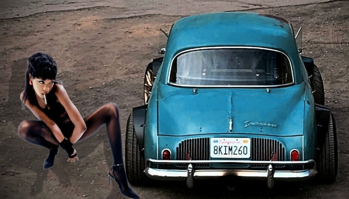L’unicité de la voiture, son étrangeté et sa patine torchée par le soleil sur une peinture bleu-vert vibrante, se sont avérées irrésistibles pour Justin, et sans hésitation, il a payé la bête à la vieille belle pute maquerelle et ramené la voiture chez lui à Simi Valley-Californie. Dans l’ensemble, la voiture était toutefois un peu en désordre. L’intérieur n’était que même désolation que celui de la maquerelle, tout ayant cédé aux éléments et aux impétueux l’ayant littéralement labourée, y laissant des traces que la morale ne peut que condamner, des cicatrices, des bosses, des traces d’abominations et des marques de torture…