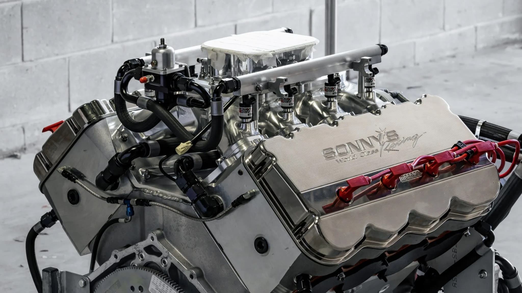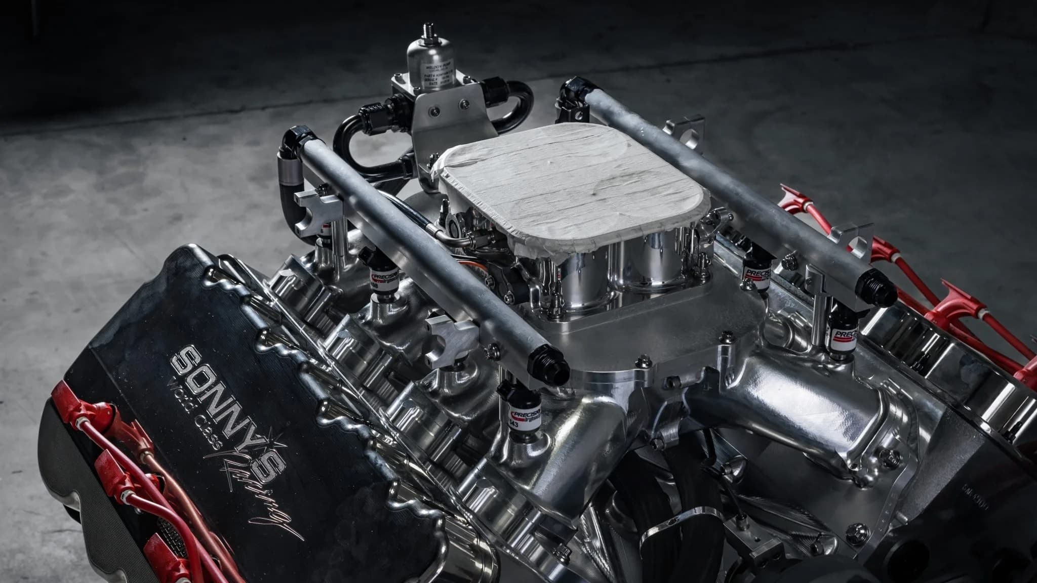 Le moteur qu’a pu acheter Bluey est un excellent exemple du phénomène, il a été développé et construit par l’équipe de Sonny’s Racing Engines (SRE) en Virginie USA, il fonctionne à l’essence de pompe régulière et développe 1.400 chevaux ! Ce chiffre de puissance obscène est possible pour plusieurs raisons, mais peut-être surtout à cause de sa cylindrée de 727ci (11.900cc) et des 54 ans d’expérience dans la construction de moteurs que l’équipe de SRE a accumulées depuis la fondation de la société par Sonny Leonard à Lynchburg, en Virginie, en 1968.