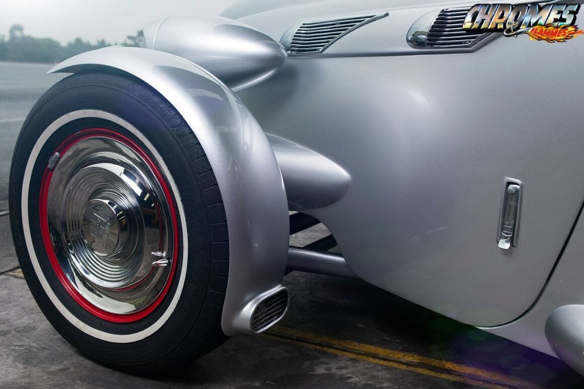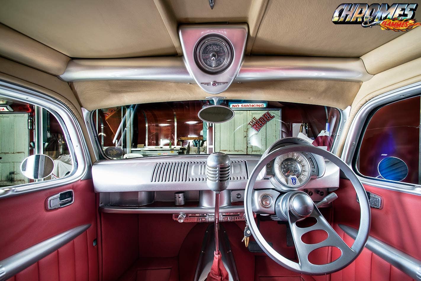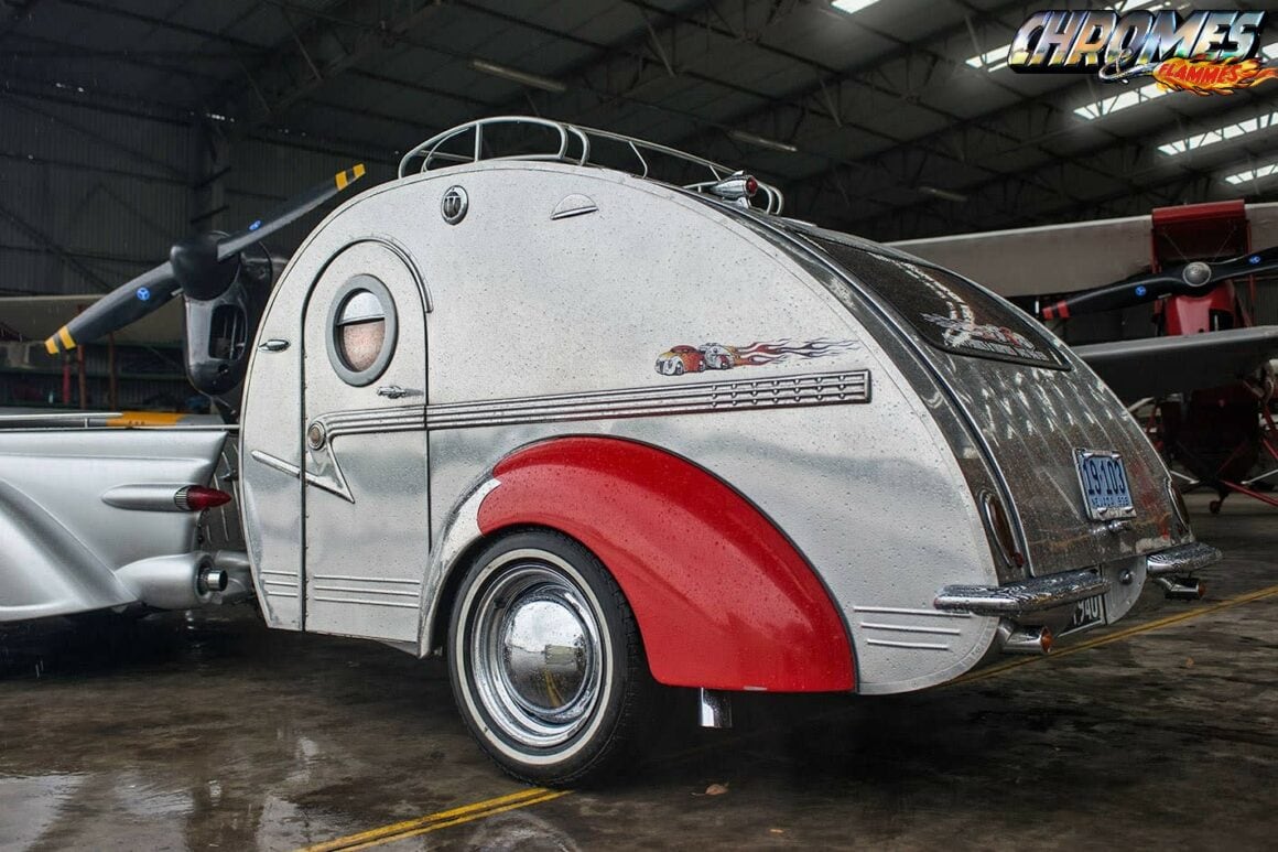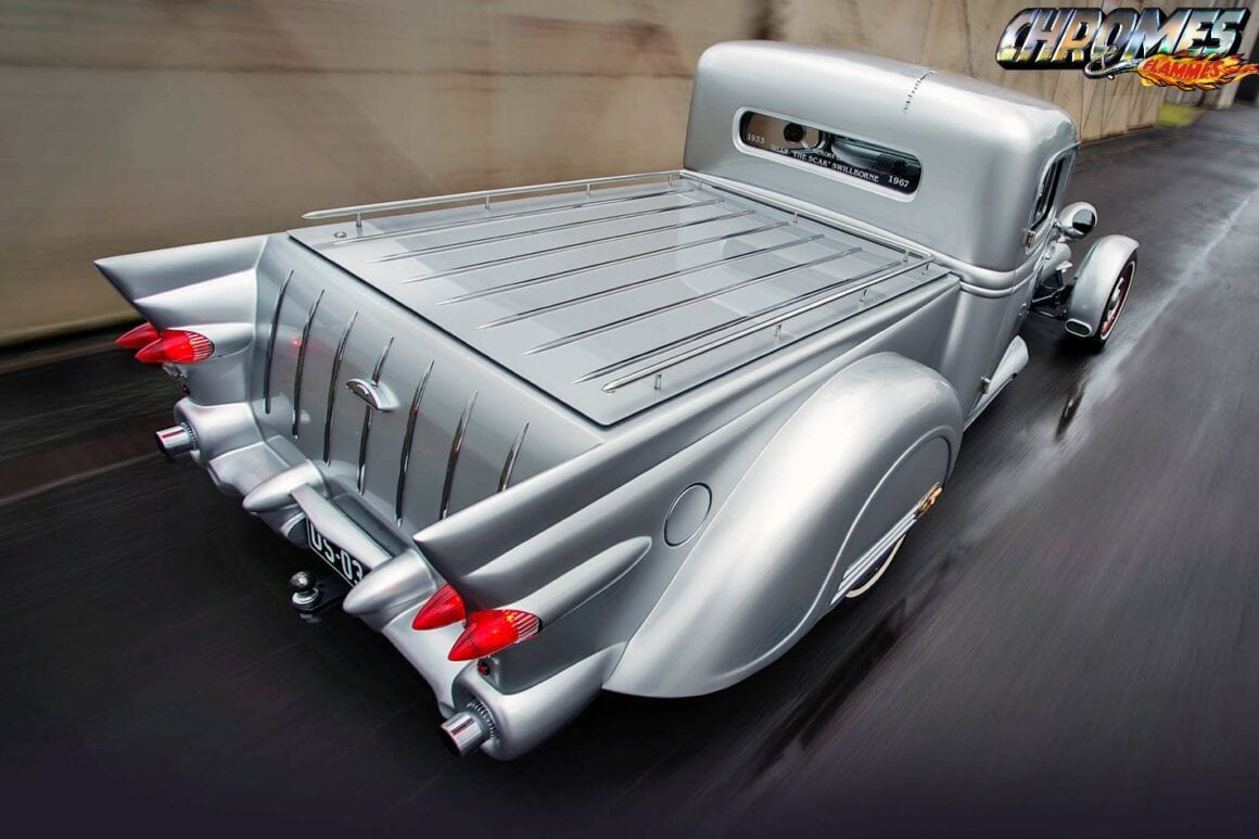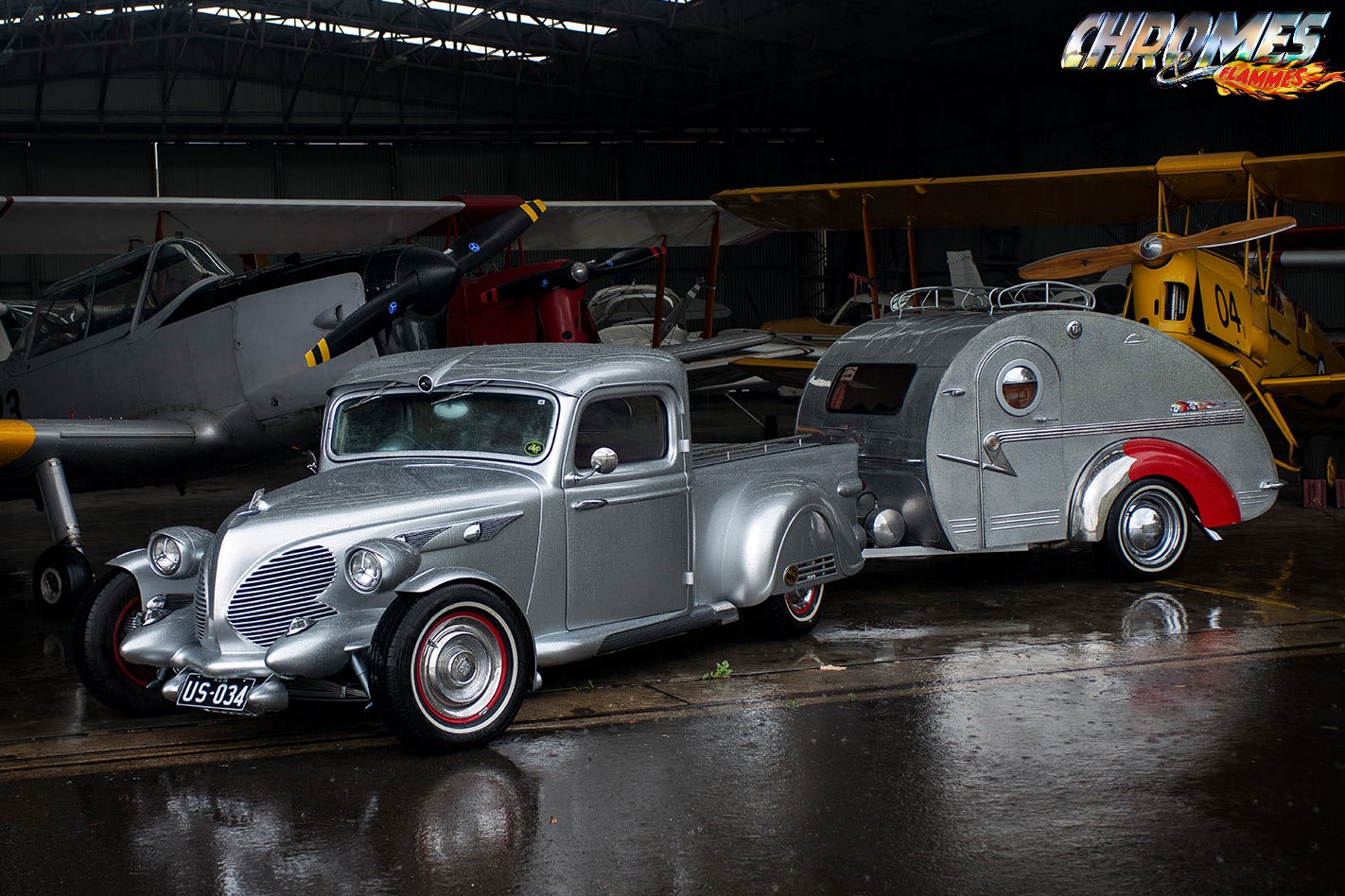 Avec l’Airborne Eight équipé d’un V8 Ford 1935, une nouvelle ère devait s’ouvrir, mais c’est un tombeau qui s’est ouvert qui a engloutit la société qui construisait cette horreur durant la Grande Dépression. Dieu seul sait comment l’une d’entre-elles s’est retrouvée en Australie ou elle est restée dans un musée local jusqu’en décembre 1983 où un Kustomiseur du cru dénommé Bluey et demeurant à Sydney en est tombé fou d’amour et l’a acquise dans l’idée d’en faire un engin extraordinaire. Il l’a d’ailleurs mise au centre de sa collection d’américaines: Falcon, Torino, Chevy.