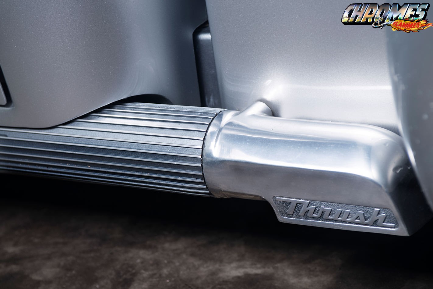 Il a d’abord ramené le tableau de bord à sa maison et l’a peint. Puis repeint. Et repeint encore. C’est ainsi qu’une construction de huit mois s’est transformée en huit ans ! Les seuls outils dont disposait l’équipe étaient un poste à souder MIG, un marteau, une clé anglaise, une scie à métaux et quelques autres outils piqués un à un dans divers supermarchés. Au fur et à mesure que la construction progressait, Bluey l’a envisagée comme un hommage à son ami d’enfance et idole : Billy Swillborne parce qu’il était son héros lorsqu’il était enfant : “Il avait une grosse cicatrice sur une épaule et était donc connu sous le nom de Scar”.