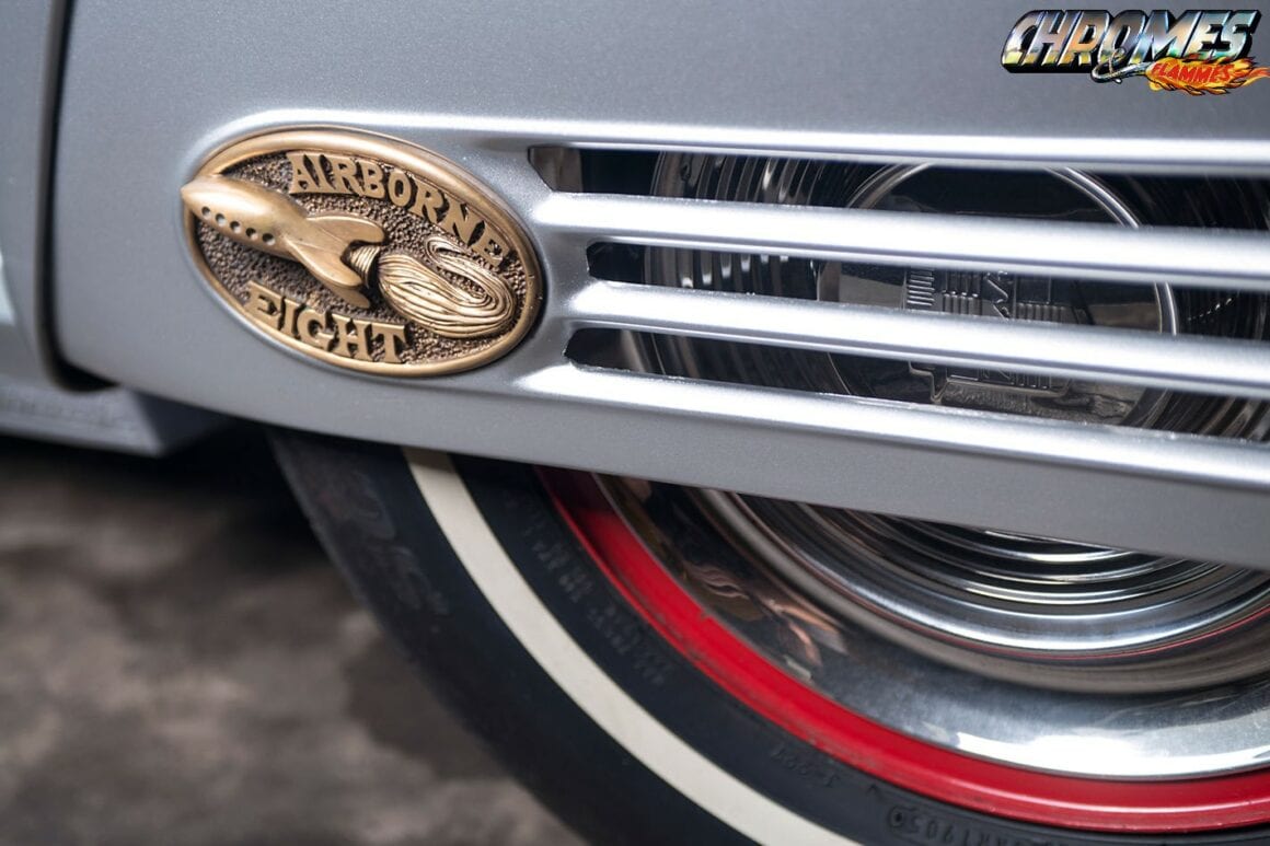 Imperturbable, Bluey a commencé à réaliser des plans pour une nouvelle carrosserie sauvage contenant des pièces de 68 modèles de voitures différentes. Un bijoutier de Bluey a même d’avance sculpté les insignes de ce qui s’appellerait l’Airborne-Eight en cire verte, puis les a coulés en bronze phosphoreux. Ce qui était quelque chose d’affreux à été transformé en pick-up Airborne Eight 1935, qui ressemblait remarquablement à une moche Ford de la même époque. Pour arriver à ce pitoyable mais complexe résultat, des “œuvres d’art” ont été créées par un artiste désœuvré nommé Scotty Harrod.