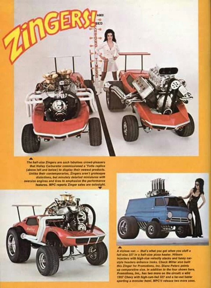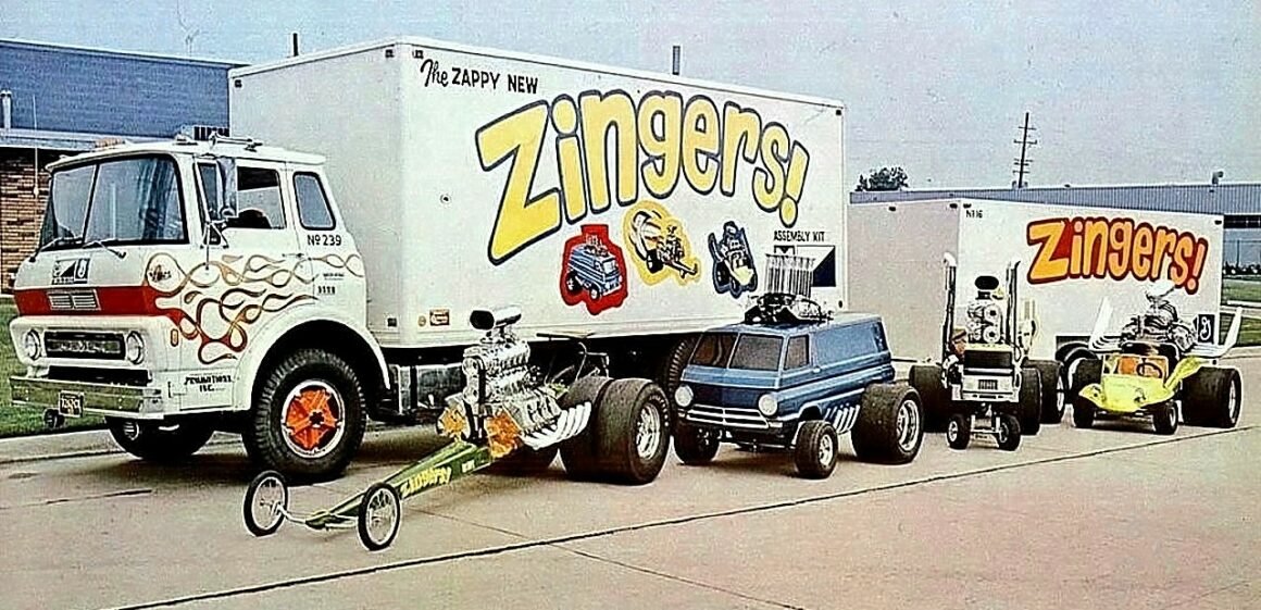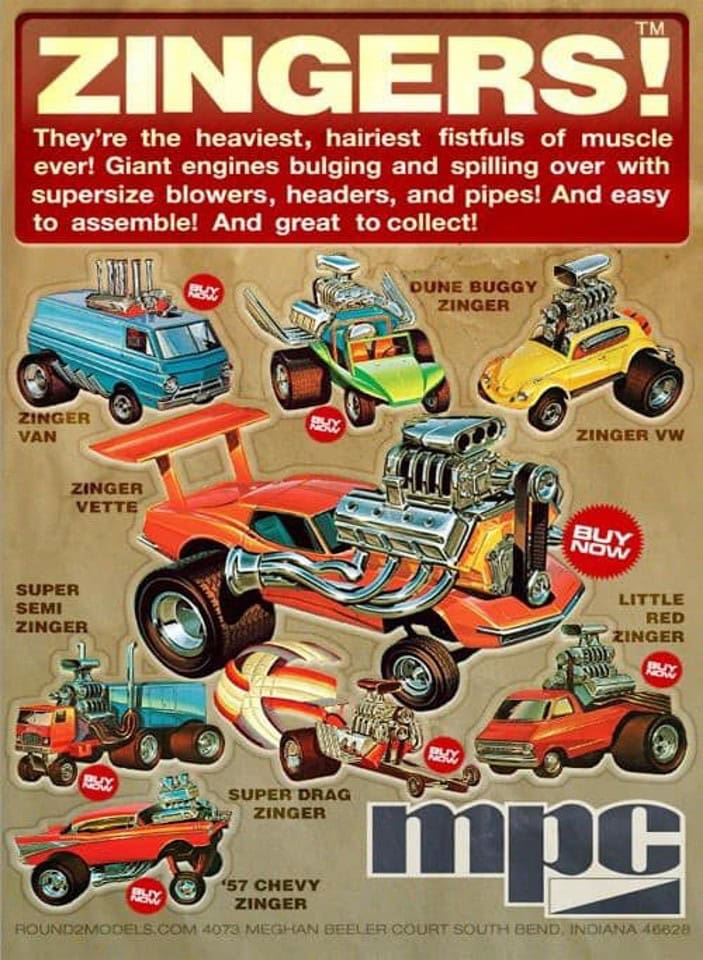 Dépasser la popularité du Hot Rod Baron Rouge/Red Baron était un défi, mais Chuck Miller était prêt à le relever. Les fabricants de modèles réduits MPC ont alors produit en 1971 une gamme sauvage de voitures personnalisées appelées Zingers. Larivee pensait qu’avec toute une gamme de Zingers à grande échelle, il aurait le genre d’attention pour Promotions, Inc. que le Baron Rouge avait attiré des années auparavant.