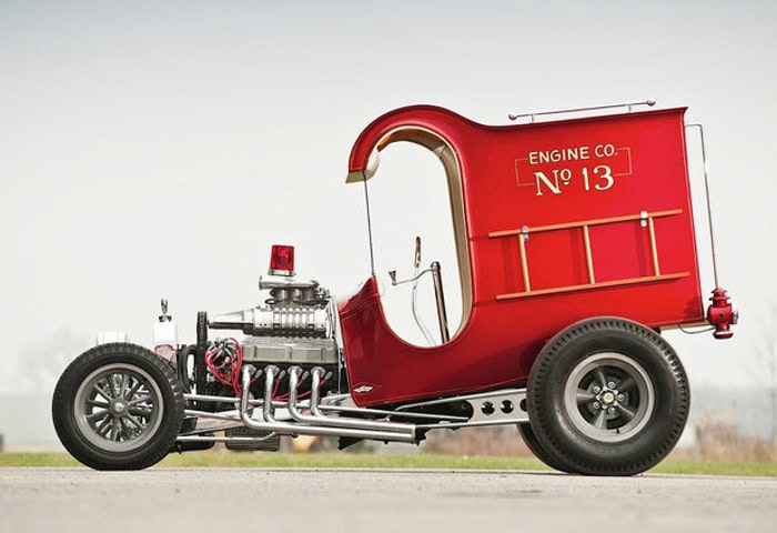 En 1968, Chuck a construit le Fire Truck, un Hot Rod modèle T avec cabine en “C” qui combinait parfaitement l’enthousiasme de chaque jeune pour les pompiers (ceux qui vont éteindre les incendies, à ne pas confondre avec les jeunes femmes qui éteignent les incendies sexuels en pratiquant à leur mec, une fellation qu’on surnomme pompier)… Donc, l’équipement d’incendie, l’engouement en plein essor pour les Hot Rods et la popularité durable des modèles T à cabine en C, faisait que la création de Chuck Miller était exactement le genre de Hot Rod d’exposition pour laquelle les gens achetaient des billets d’entrées dans les shows de Hot Rods.