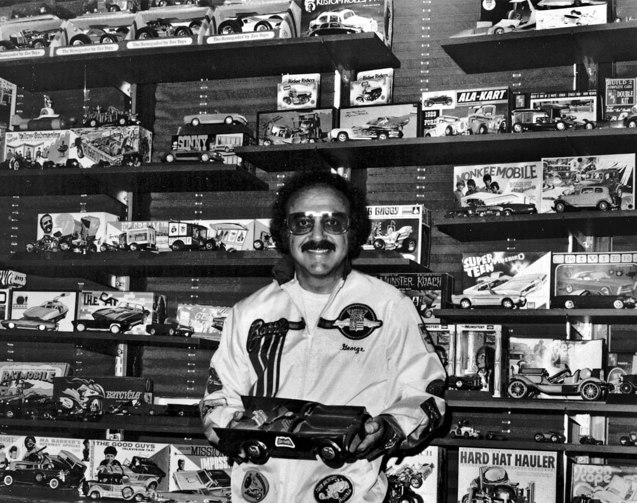 -“Comment l’ai-je connu ? De la façon dont la plupart des gens se rencontrent, bien sûr : en utilisant le “Super Van” de George Barris pour promouvoir un concours de sosies de Farrah Fawcett. Cette histoire aventureuse a commencé au milieu des années ’70, lorsqu’on pouvait acheter une toute nouvelle BMW 320i pour 7.990 $ et la remplir d’essence pour 69 cents le gallon. Je conduisais alors un VW bus rouge et blanc avec un toit ouvrant à manivelle et un levier de vitesses à bouton “pax” que j’ai maintenant sur ma Karmann Ghia’71, dans le cadre de mon arsenal photo en tant que photographe de studio et de localisation dans la région d’Hollywood. J’avais fièrement obtenu mon diplôme de l’Art Center College of Design en filmant des nananas à poils car à cette époque elles ne se rasaient pas la chatte. Un certain nombre d’années auparavant j’avais travaillé avec Charles Lange de “Media Technique”, une importante société de production à Hollywood qui s’occupait de présentation de diapositives multimédias (extrapolées de film 35 mm), c’était le “L.A. Prime time Arts Award Show”, des publicités télévisées et des événements à grande échelle pour voitures/motos et camions au “Los Angeles Convention Center” et à la “Long Beach Arena”.