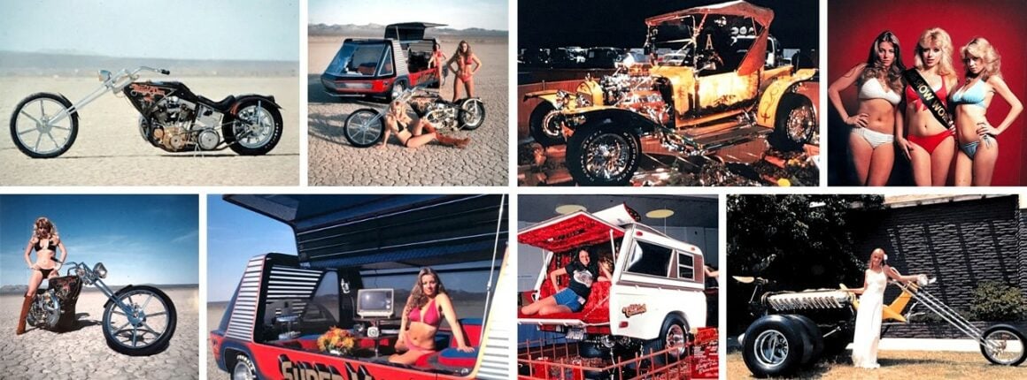 -“J’ai été présenté à Snider et amené à bord pour gérer toutes les photographies de promotion impliquant les efforts de Snider, y compris la création et la photographie de l’affiche du “C.A. Truckin’ & Cycle Show”. Pendant ce temps, Snider a commencé à traîner autour de George Barris, l’un des principaux personnalisateurs-kustomiseur de voitures de la ville, qui était surtout connu pour ses voitures de télévision et de cinéma hollywoodiennes comme la Batmobile, la Black Munster, et la Green Hornet (frelon vert). Sa création la plus connue a été sa ’51 Hirohata Mercury qu’il a construit avec son frère Sam. Evel Knievel a également participé à la série. À cette époque, Snider a organisé un concours de sosies de Farah Fawcett que j’ai photographié dans mon studio et organisé un affichage à Hollywood. Ce n’était pas une idée terriblement originale, car de tels concours avaient lieu dans tout le pays depuis quelques années, mais l’idée de faire un panneau d’affichage après coup pour promouvoir un autre événement l’était certainement”.