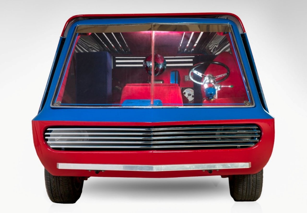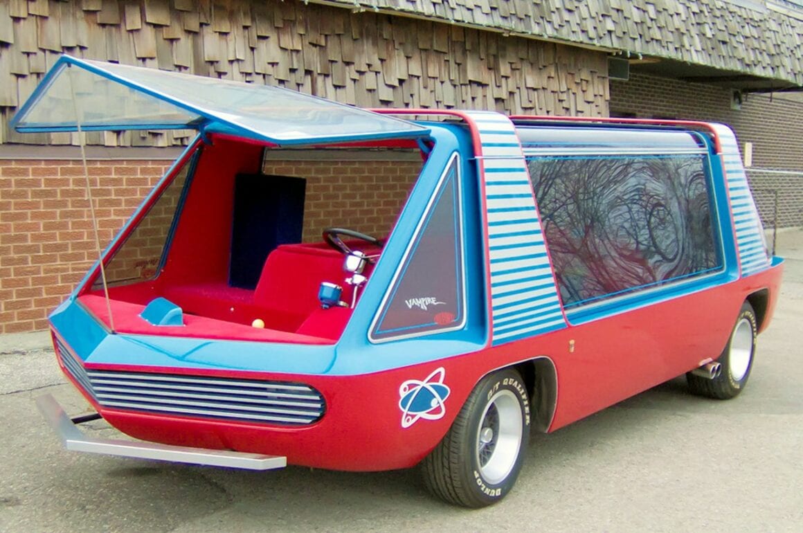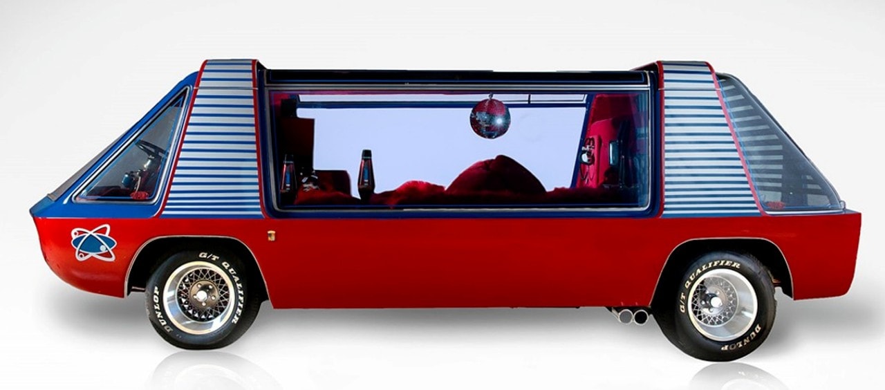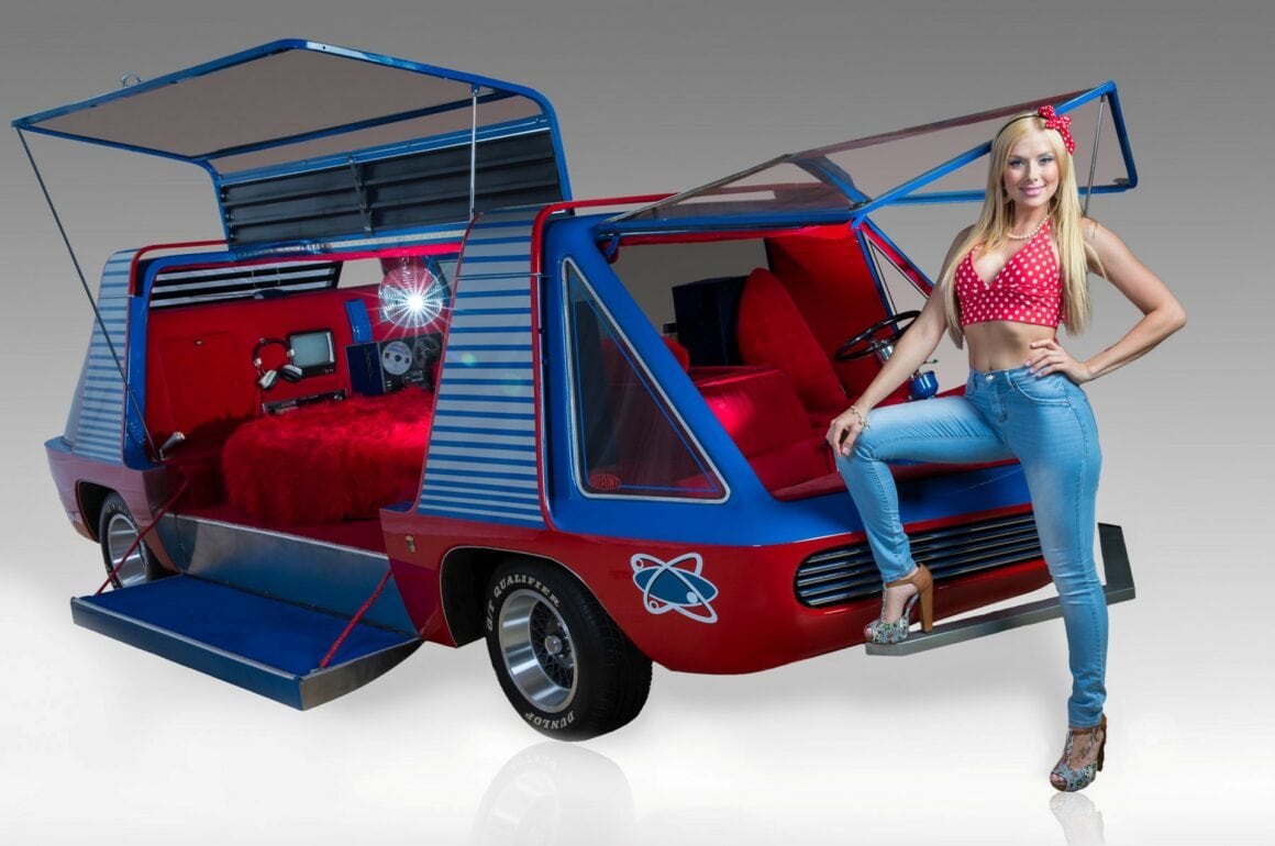 –“Il était Le summum du confort de roulement, comme Barris l’a dit un jour, il l’avait construit à la fin des années ’60 à partir d’une Dodge A-108 Sportsman de 1966″. –“Oui, le changement de nom de “Love Machine” à “Super Van” est venu grâce à son rôle de véhicule principal dans le film éponyme de “Vansploitation” de 1977. C’était le nec plus ultra de l’automobile futuriste destinée aux pires crétins et imbéciles, avec le toit recouvert de panneaux solaires, l’engin était motorisé par un V8 318cu-in couplé à une transmission manuelle à trois vitesses. Le train de roulement était équipé d’amortisseurs Bilstein. La fourgonnette était personnalisée de manière symétrique dotée d’une paire d’arches de roues géantes avec arcs de sécurité intégrés et de feux à quartz K.C. pour un éclairage routier large. Barris avait équipé l’intérieur tel un bordel roulant pour des plaisirs de luxe tels qu’un lit circulaire rotatif chauffant, un canapé boudoir en forme de U, une télévision couleur Panasonic avec cassettes Betamax, un téléphone de style Français, un magnétophone à bande, un lustre en cristal, une peinture orange brûlée nacrée (40 couches de laque), une chaîne stéréo Craig avec quatre haut-parleurs, un système d’éclairage informatisé et des portes-fenêtres en ailes de mouette, le tout (théoriquement) alimenté par des cellules solaires. L’ensemble de l’opulent ensemble de luxe était assis sur des pneus G60 Formula montés sur des roues de 10 pouces. La camionnette apparaîtra plus tard dans le feuilleton Hill Valley et dans le classique des années ’80 “Retour vers le futur II”. Le Van est même sorti en kit de maquette à l’échelle 1/25, avec les portes-fenêtres à ailes de mouette, des pneus super larges et un intérieur très détaillé. Voilà, je vous ai tout avoué, je ne suis donc pour rien et 100% innocent ! C’était la fin de mon implication avec Snider, qui va mourir de mort violente treize mois plus tard, un suicide, car ayant échoué dans à peu près toutes ses entreprises avant de tuer sa femme puis lui-même”.