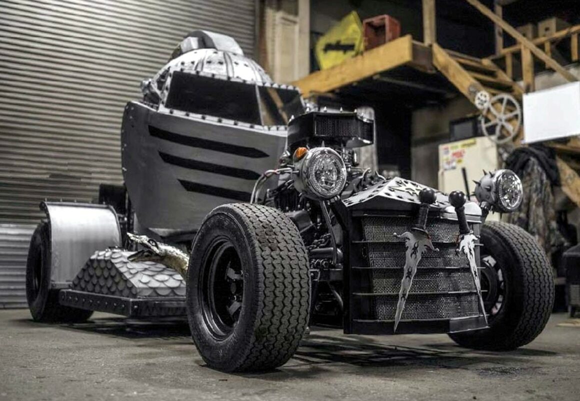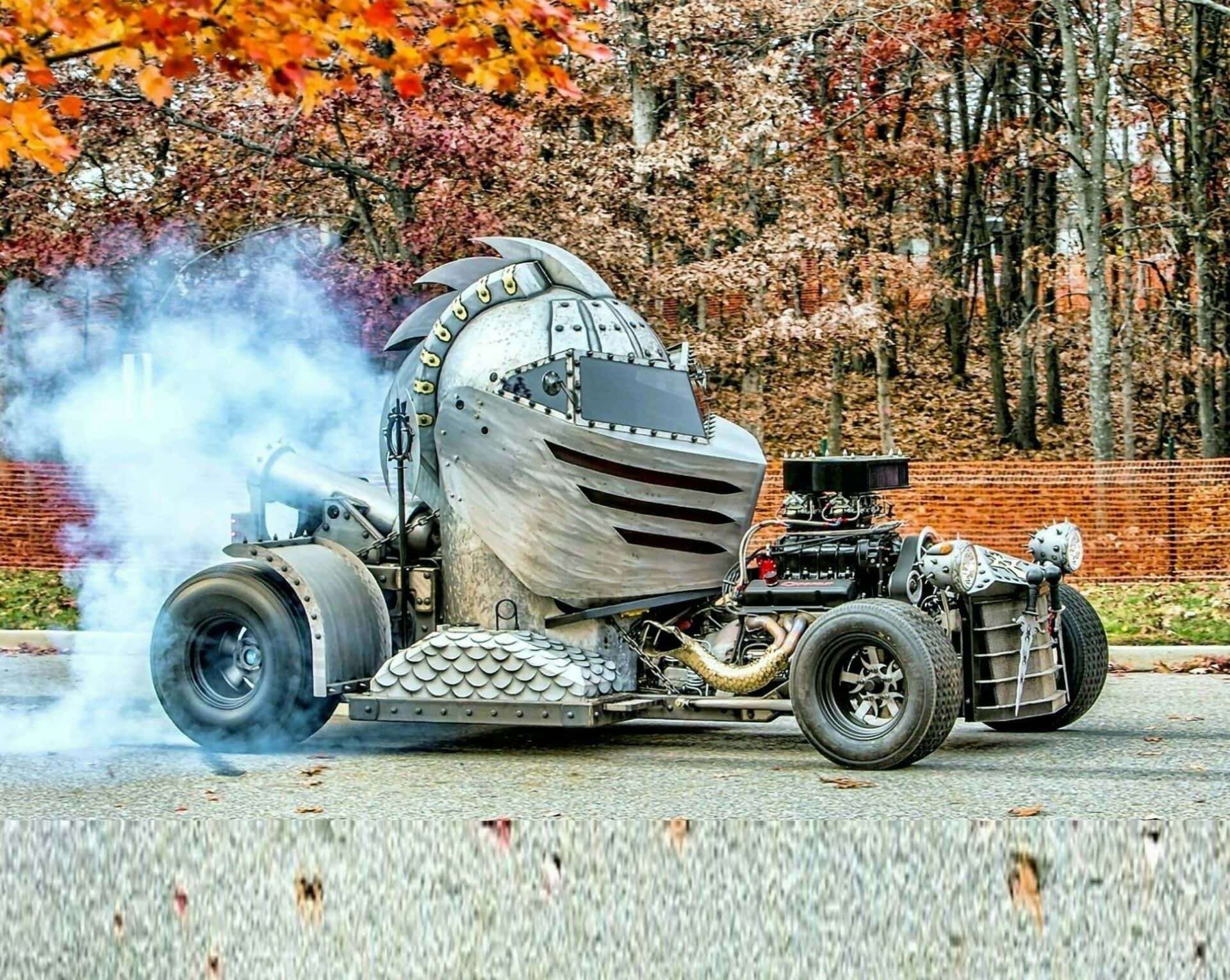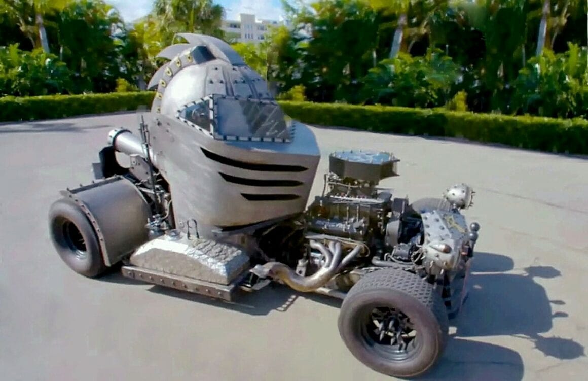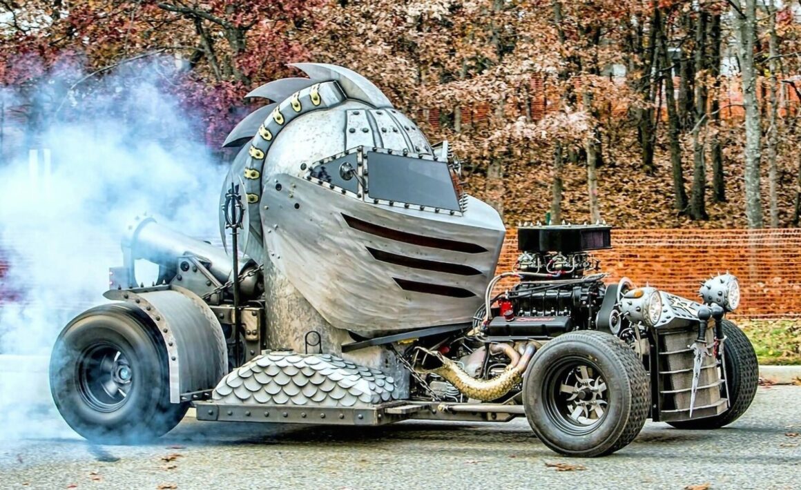 Bohata Design Inc., est un garage installé depuis une dizaine d’années à Long Island, New York, USA qui réalise exclusivement des Hot Rods et autres engins les plus fous et décalés que possible. Ils sont “Steam-Punk à donf” et vivent le Steam-Punk également “à donf”, construisant des Hot Rods et également tout ce qui est Steam-Punk en Déco’s de mobiliers métalliques, Choppers et Hot Rods… AJ Bohata est le Big-Boss, capable de réaliser l’impensable… C’est ce qui en est sorti qui a créé l’évènement d’écrire cet article… Tout a commencé avec une entreprise de gestion des déchets qui voulait “marquer le coup” avec une sculpture roulante… Il leur a construit un mini-camion à ordures unique, radiocommandé, destiné à transporter des barbecues pour les fêtes d’avant-match. Et pour une nouvelle boite de nuit avec restaurant hyper chic et hors de prix style “Old-Castel”, il a créé et réalisé le Hot Rod “Medieval One”…