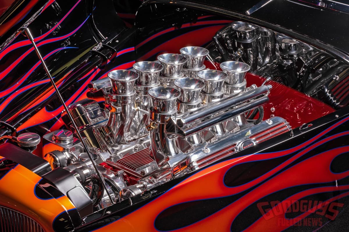 La beauté flamboyante de ce “Monty Belsham” a été un régal spécial à voir, car il a remporté la couronne du plus beau roadster d’Amérique en 2020 au Grand National Roadster Show peu de temps avant que le monde ne s’arrête en raison du Covid.