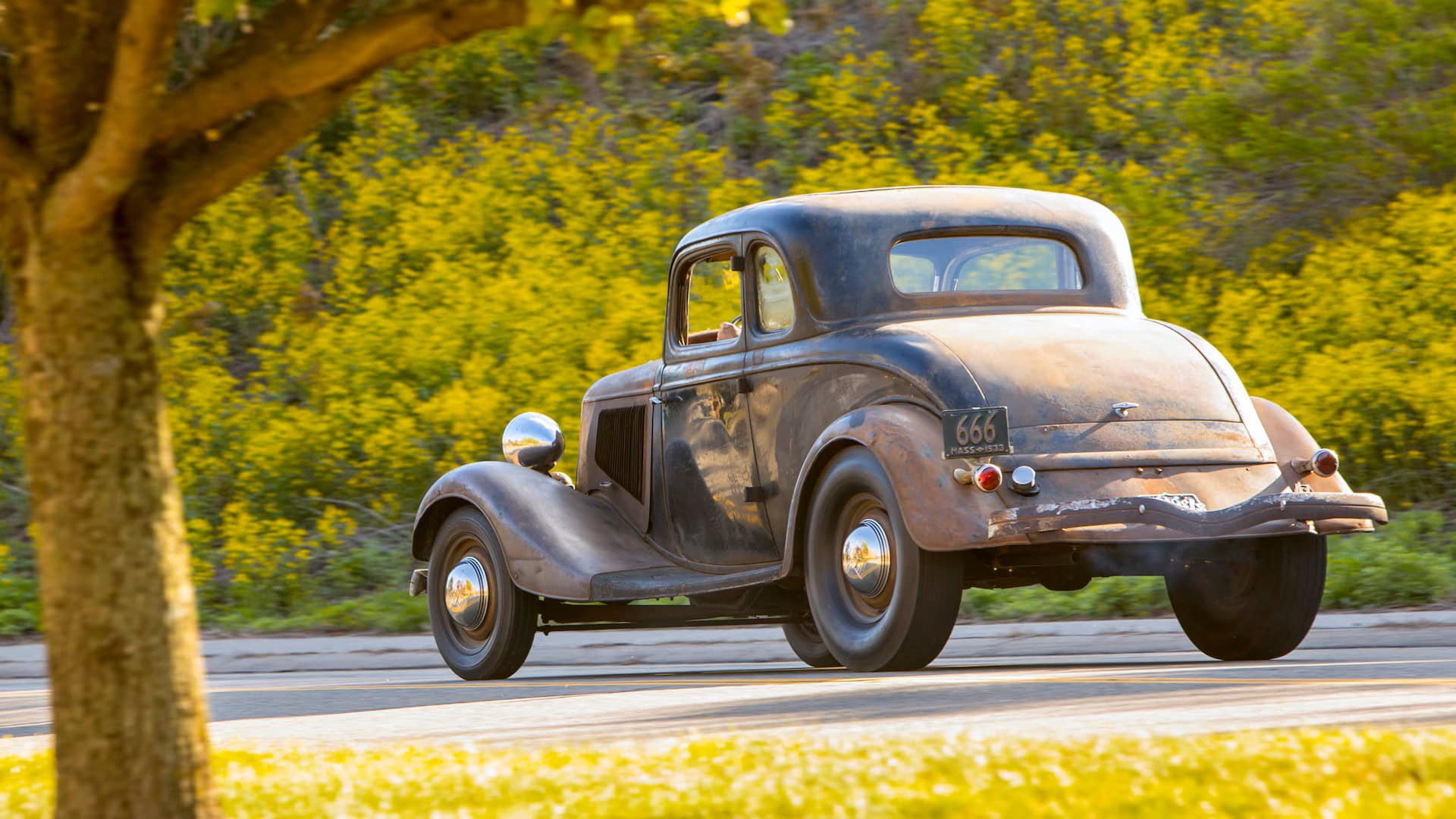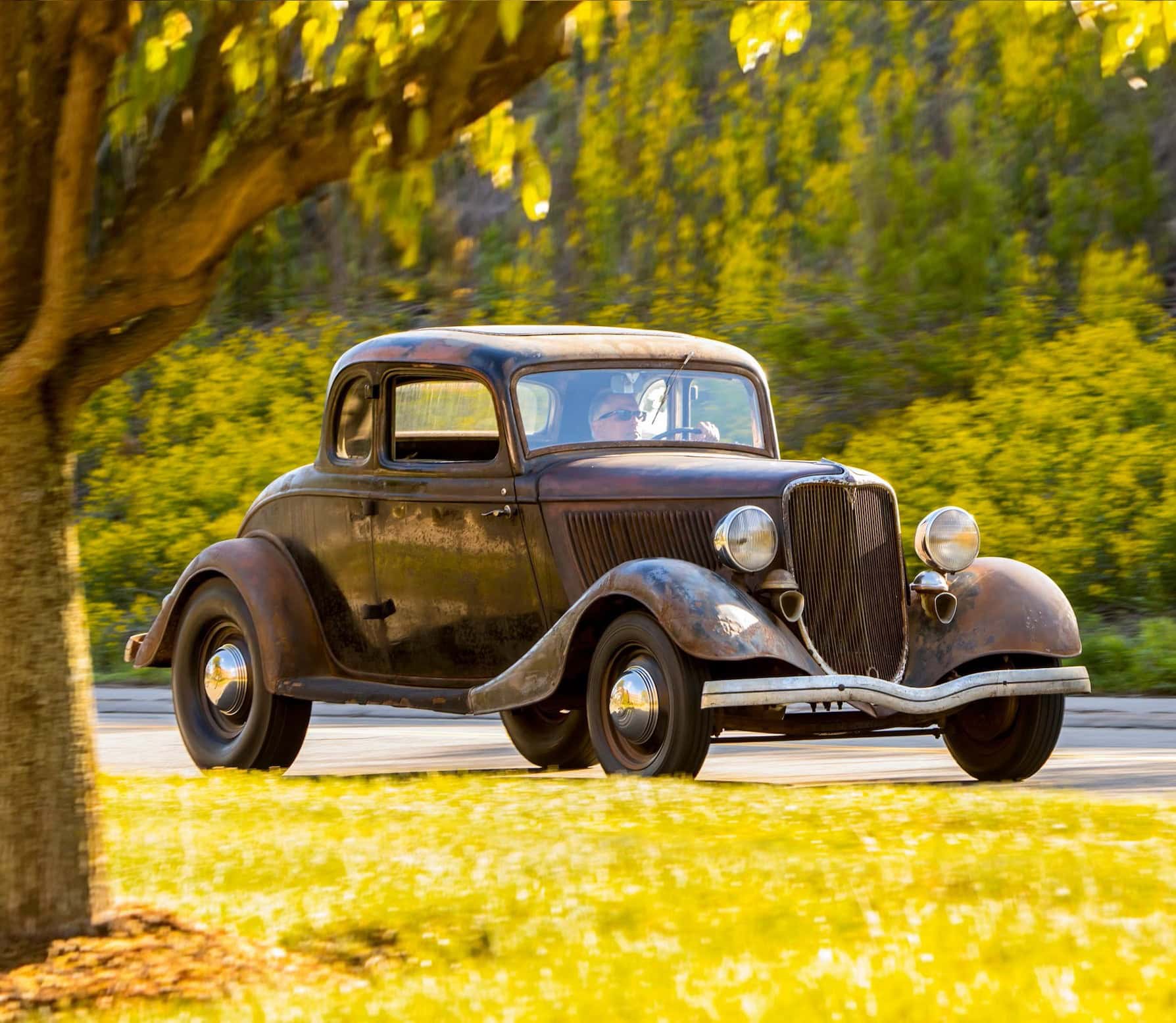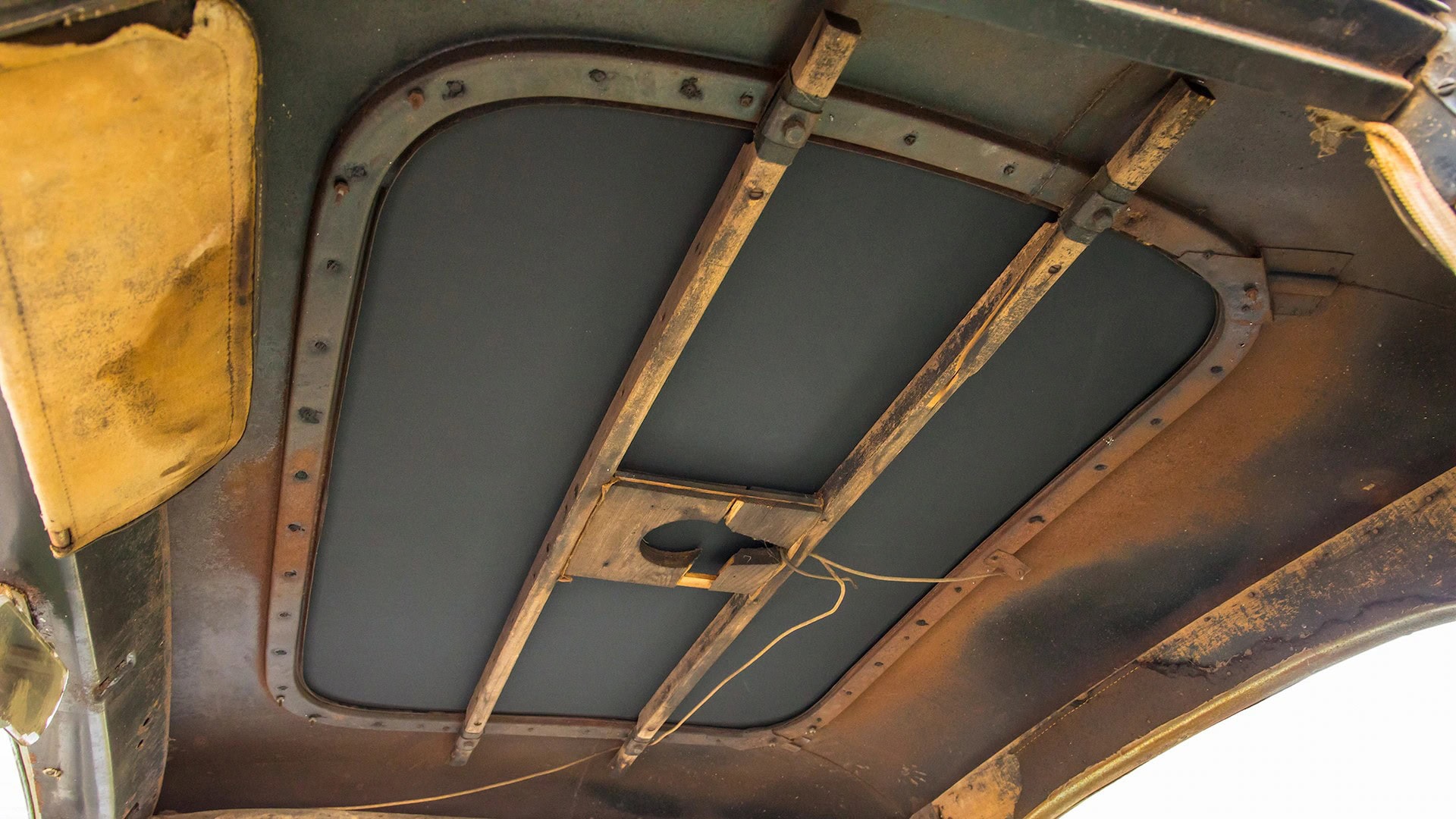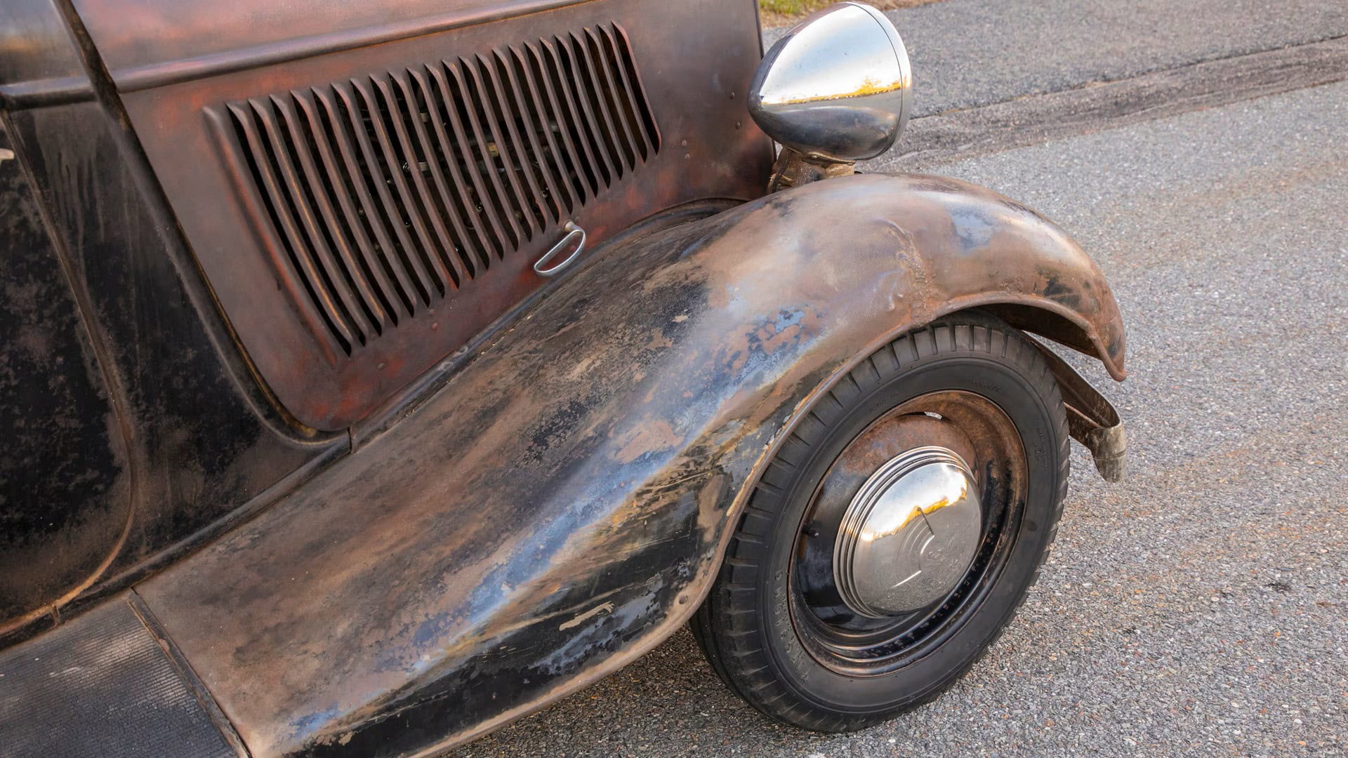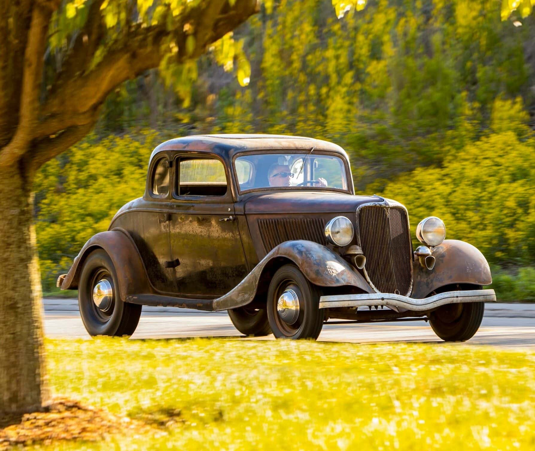 Un plaid vert épouvantable accentuait les tissus des portes, vert sale. Il s’agissait en effet d’un véritable Rod survivant d’avant-guerre… J’ai direct cru que je découvrais le tombeau de Ramsès… Le fait que la voiture portait encore toute sa tôle d’usine, qu’elle était entièrement équipée de ses pare-chocs d’origine et qu’elle n’était pas Top-Choppée était un miracle. Partout où je regardais, il était usé et en lambeaux aux bons endroits, ce qui lui donnait une personnalité que peu de gens pouvaient comprendre. Les voitures anciennes racontent des histoires et ce coupé n’était pas différent. Ses histoires sont apparues dans les zones où de vieilles carrosseries métal sur métal avaient été commencées, et dans les restes d’une collision frontale mineure.