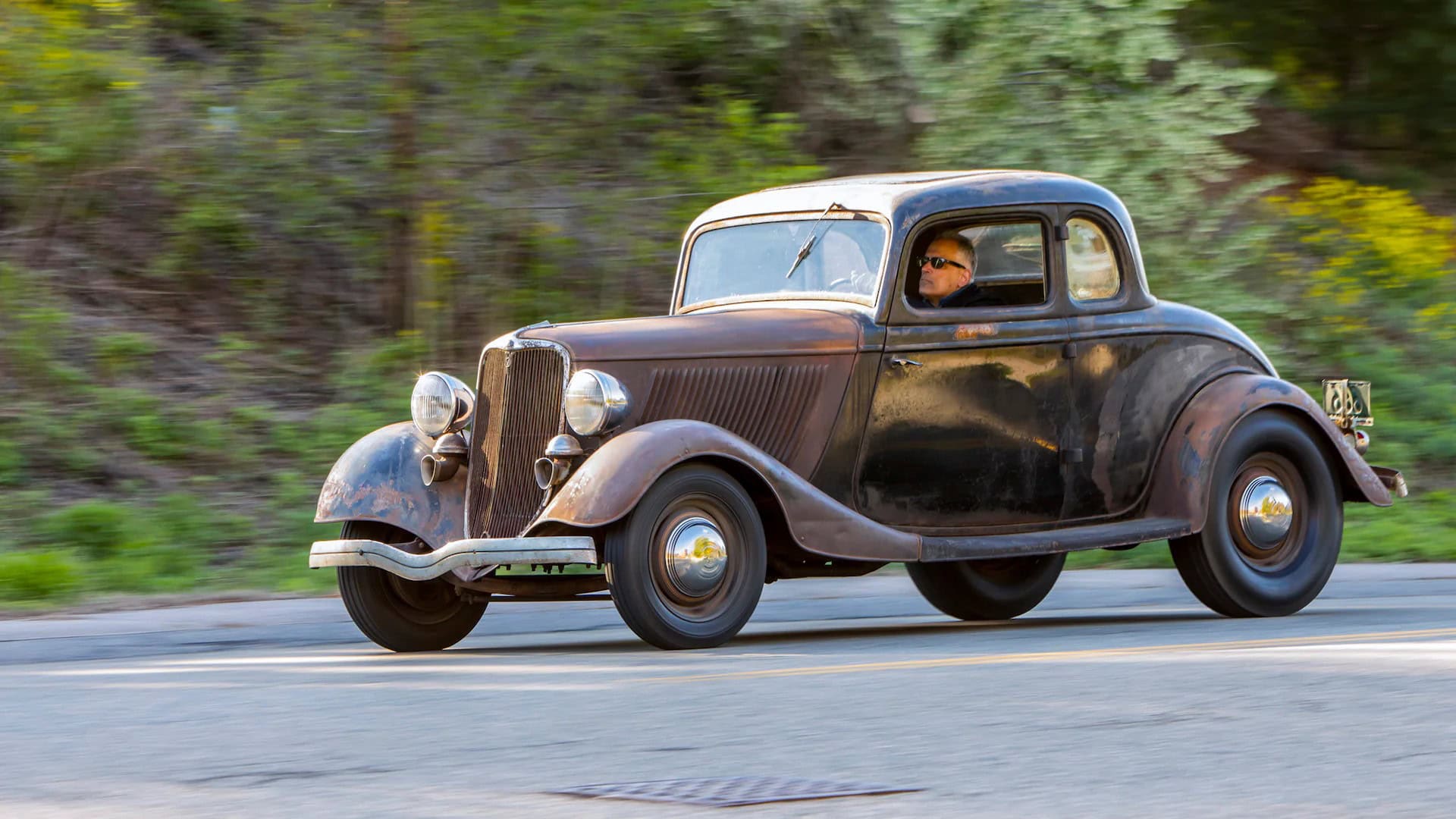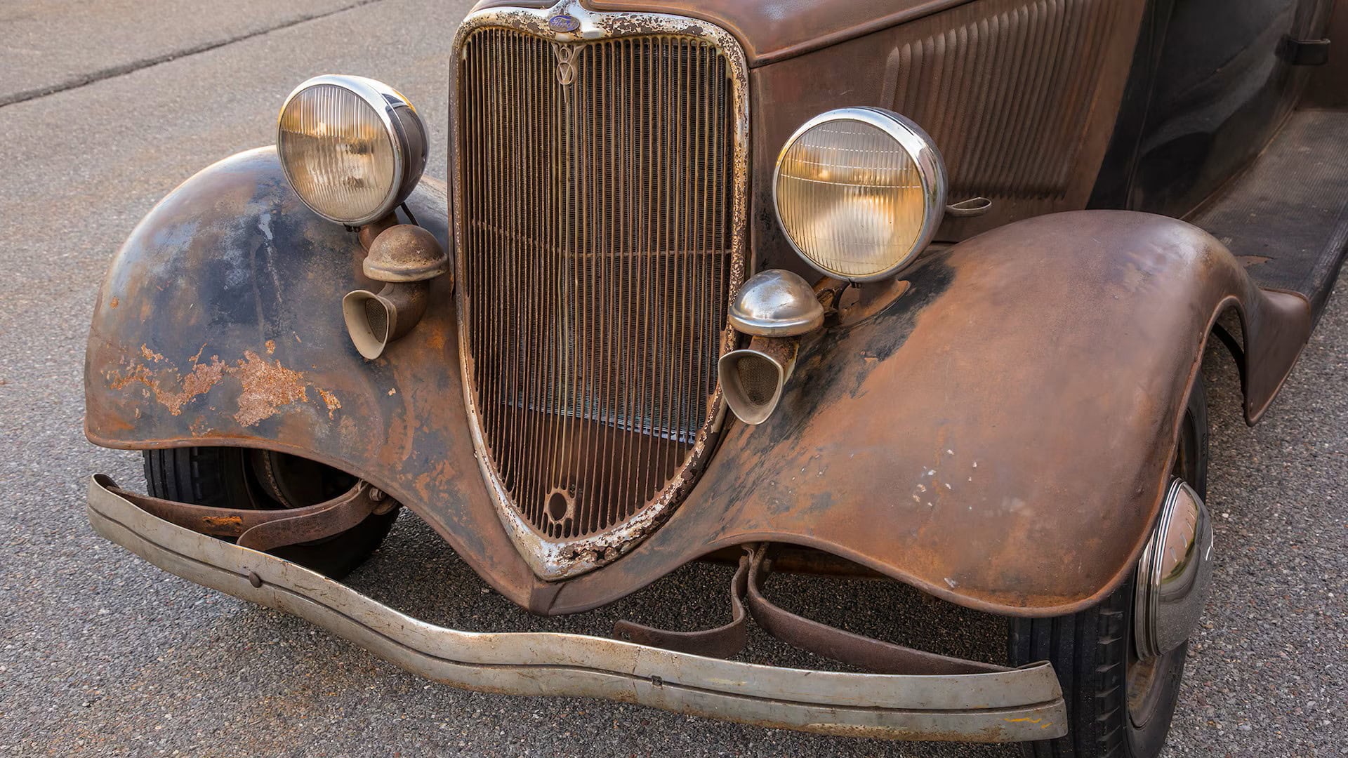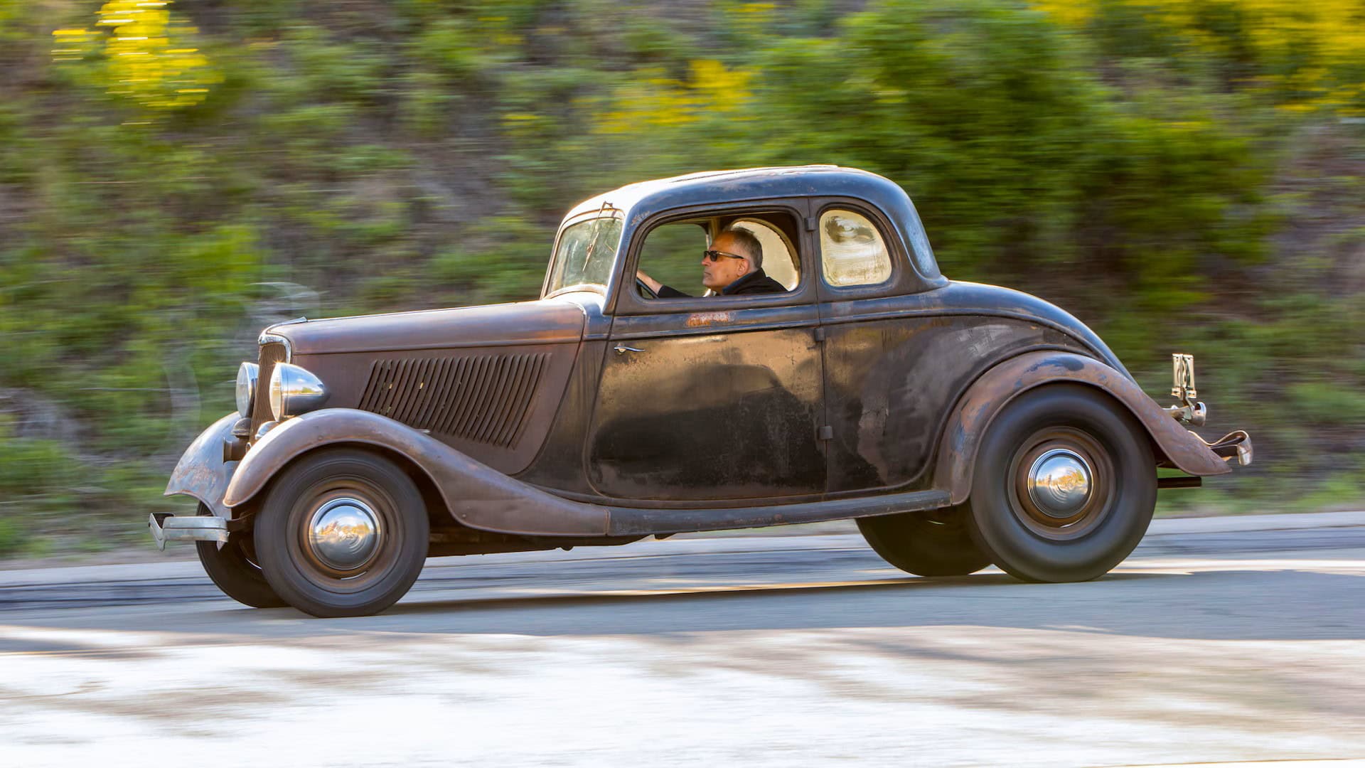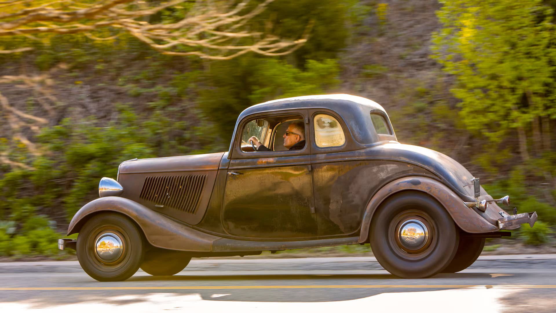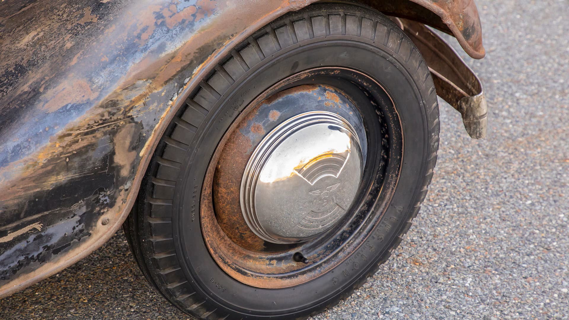 Un plaid vert épouvantable accentuait les tissus des portes, vert sale. Il s’agissait en effet d’un véritable Rod survivant d’avant-guerre… J’ai direct cru que je découvrais le tombeau de Ramsès… Le fait que la voiture portait encore toute sa tôle d’usine, qu’elle était entièrement équipée de ses pare-chocs d’origine et qu’elle n’était pas Top-Choppée était un miracle. Partout où je regardais, il était usé et en lambeaux aux bons endroits, ce qui lui donnait une personnalité que peu de gens pouvaient comprendre. Les voitures anciennes racontent des histoires et ce coupé n’était pas différent. Ses histoires sont apparues dans les zones où de vieilles carrosseries métal sur métal avaient été commencées, et dans les restes d’une collision frontale mineure.