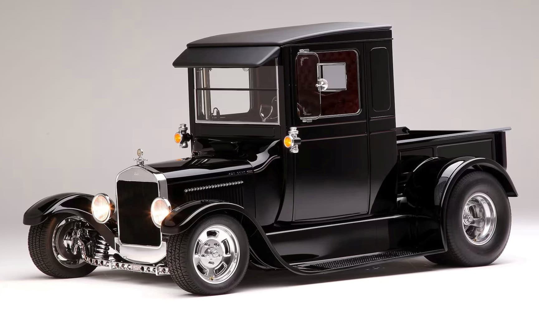 Pour ce qui est de ce Hot Rod qui se situe en altitude, donc totalement à l’opposé d’une Omlet-Baveuzzzz, sachez que cette œuvre d’art a été réalisée par Larry Birdsong directeur d’un atelier d’usinage aérospatial américain et ingénieur mécanique, ayant décidé de marquer sa retraite d’un emploi où il a créé des gabarits et des montages pour des applications aérospatiales. À 70 ans, Larry aime les Hot Rod’s Pick up’s modèle T et ce depuis l’âge de 14 ans, lorsqu’il avait l’habitude de les dessiner. C’était quelque chose dans la silhouette qu’il aimait, comme la façon dont le lit benne du Pick-up surplombe au-delà des ailes. Vivant à Prescott Valley, en Arizona, Larry a passé les 17 dernières années à perfectionner son Hot Rod noir.